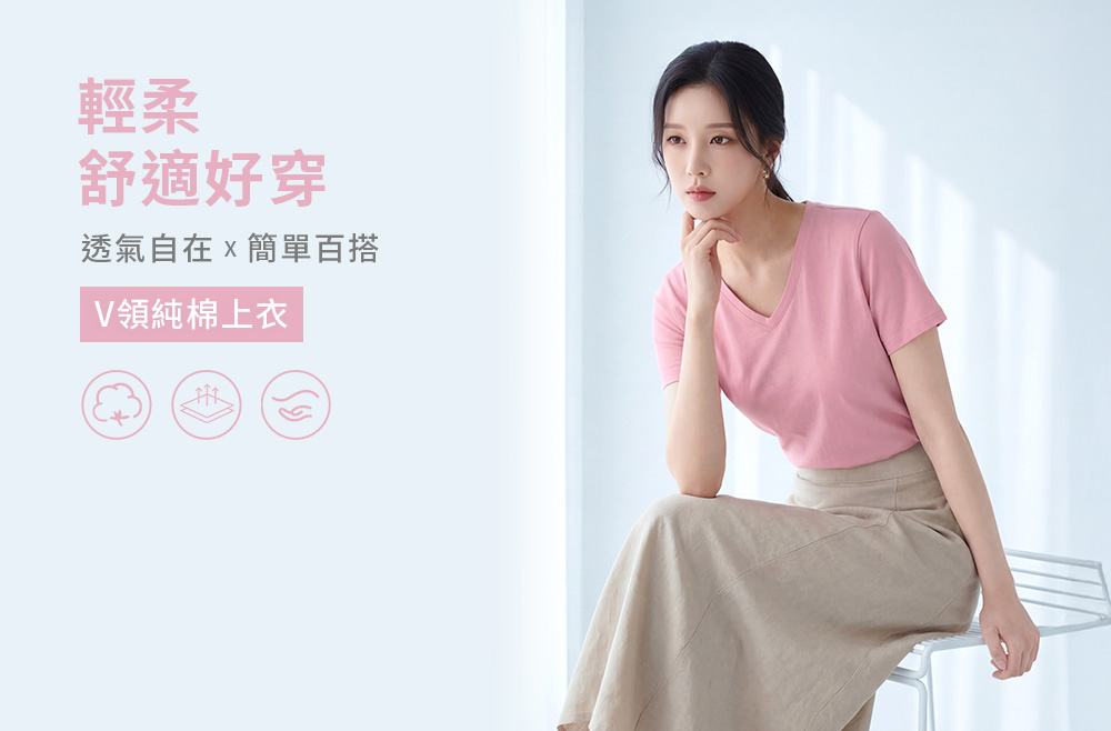 純棉V領休閒百搭T恤
