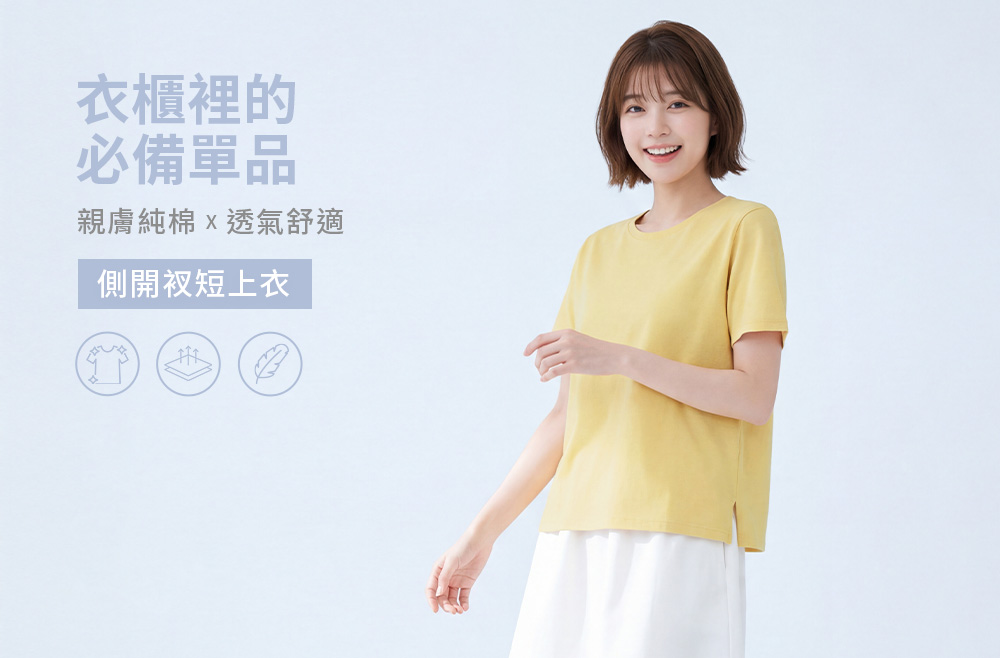 純棉圓領側開衩短上衣