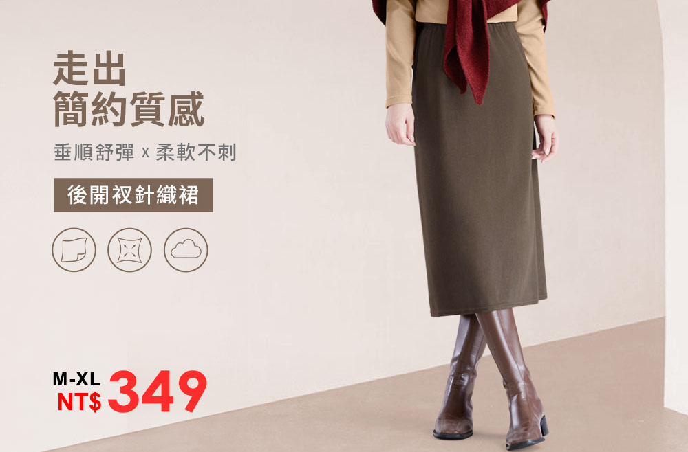 鬆緊腰後開衩針織裙