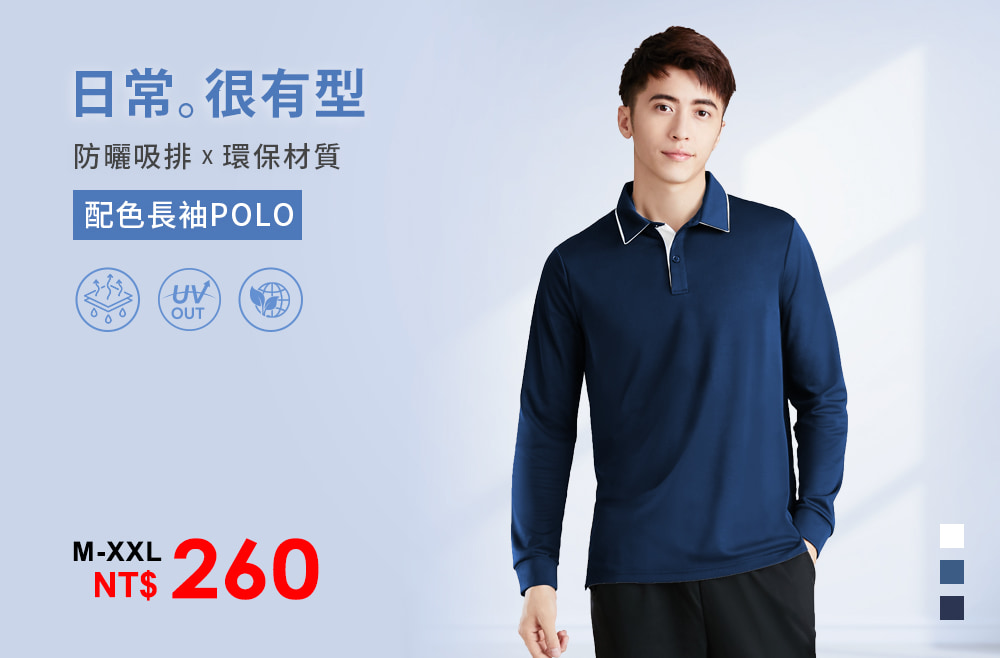 舒適.MIT永續環保材質-抗UV吸排抗菌長袖polo衫-男裝