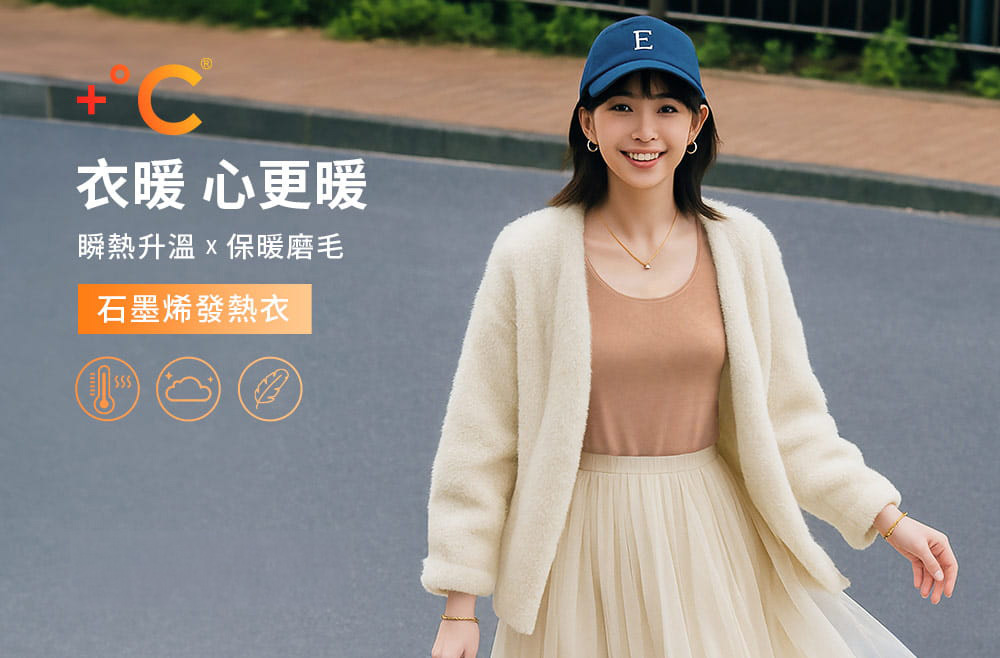 +℃ 超極暖.石墨烯.木耳捲邊發熱衣【買一送一】升溫內磨毛發熱衣