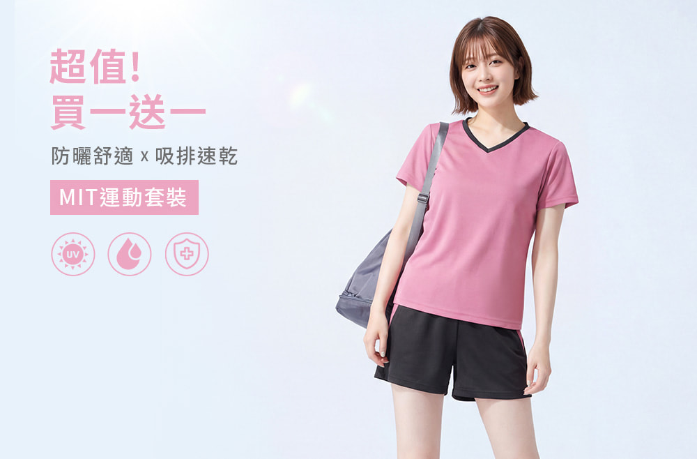 【任選‧買一送一】舒適.MIT永續環保材質-抗UV吸排抗菌V領配色運動套裝