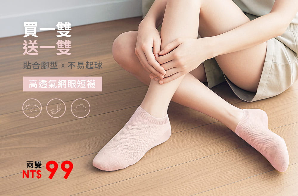 【買一送一】不掉跟!抗起球透氣網眼隱形襪