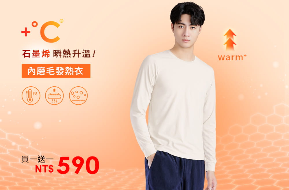 +℃ 超極暖.石墨烯.圓領發熱衣【買一送一】升溫內磨毛發熱衣-男裝