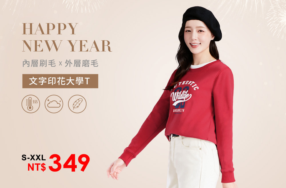 保暖.MIT永續環保材質-文字印花刷毛大學T
