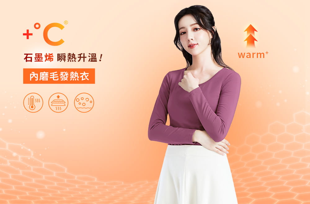+℃ 超極暖.石墨烯.木耳捲邊發熱衣【買一送一】升溫內磨毛發熱衣