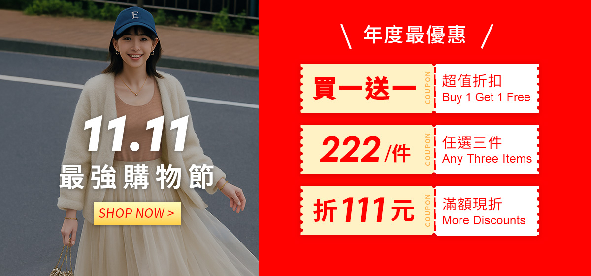 | 10/30 | ☆ 雙11購物節: ▸ 全館滿 2000 折抵 150 元 ▸ 全館滿 3000 最高折 300 元 活動期間:10/30 10:00~11/12 止 登入會員 領優惠券!