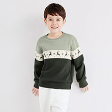 保暖.MIT永續環保材質-小鹿圖騰印花刷毛大學T