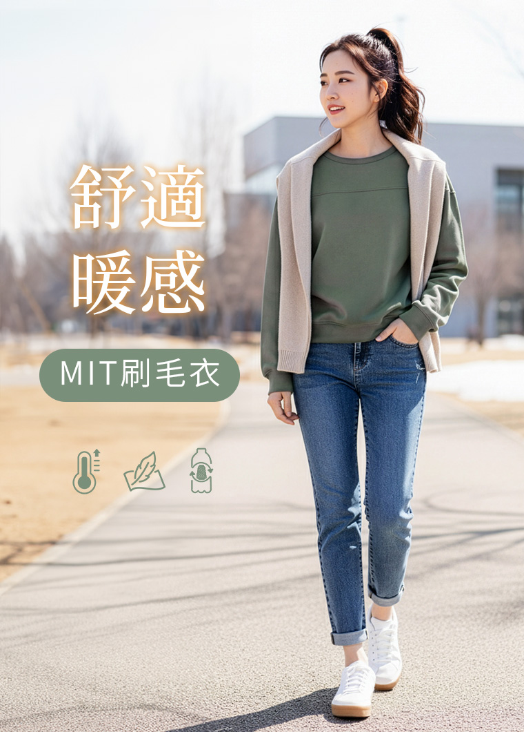 保暖.MIT永續環保材質-休閒圓領刷毛大學T|女裝 WOMEN|衣芙 EFShop
