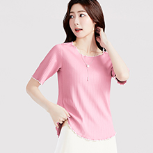 坑條撞色木耳捲邊五分袖上衣坑條撞色木耳捲邊五分袖上衣坑條撞色木耳捲邊五分袖上衣