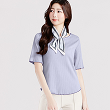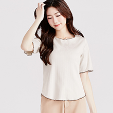 木耳邊上衣推薦|立體坑條紋理 × 撞色滾邊設計 × 修飾手臂五分袖剪裁|女裝 WOMEN|衣芙 EFShop