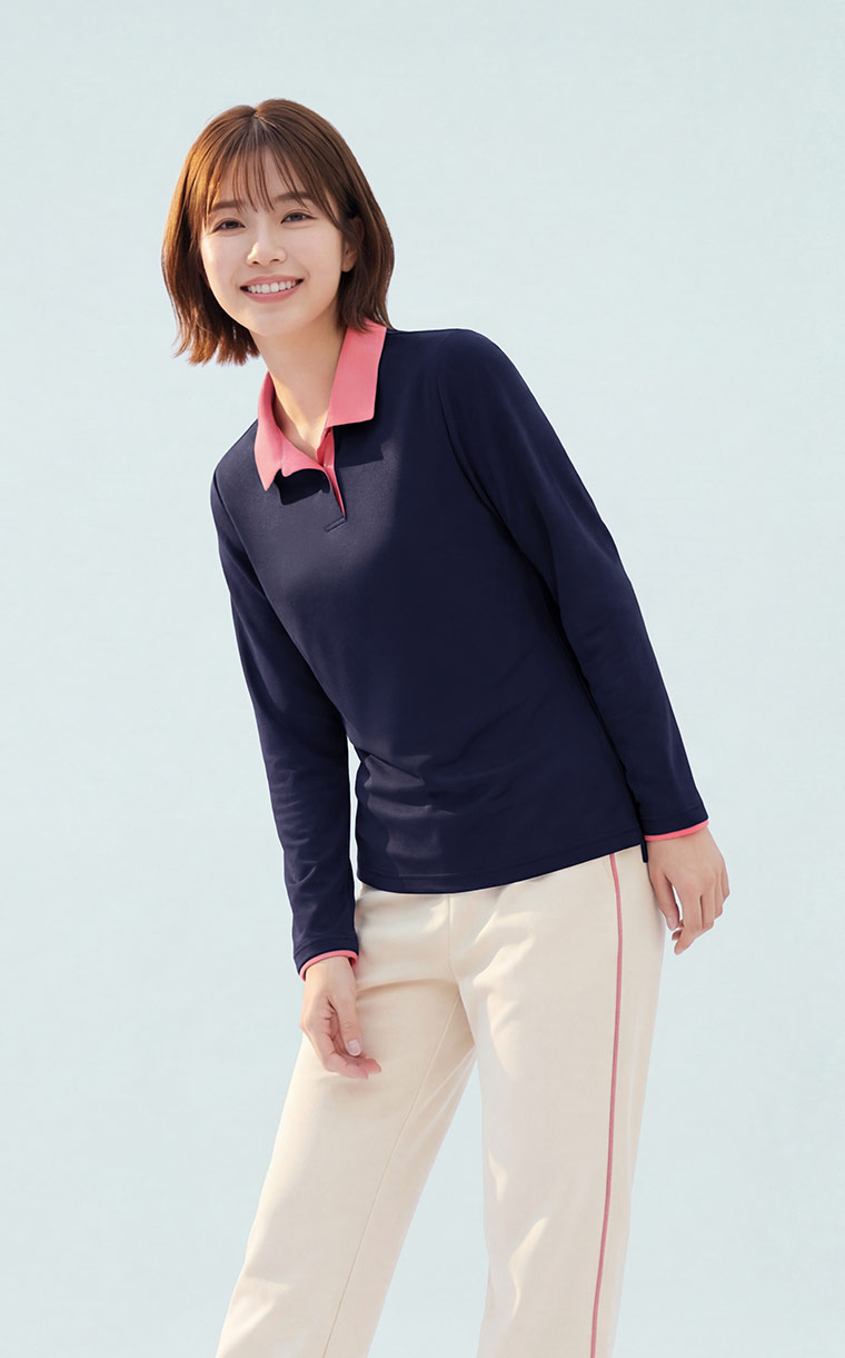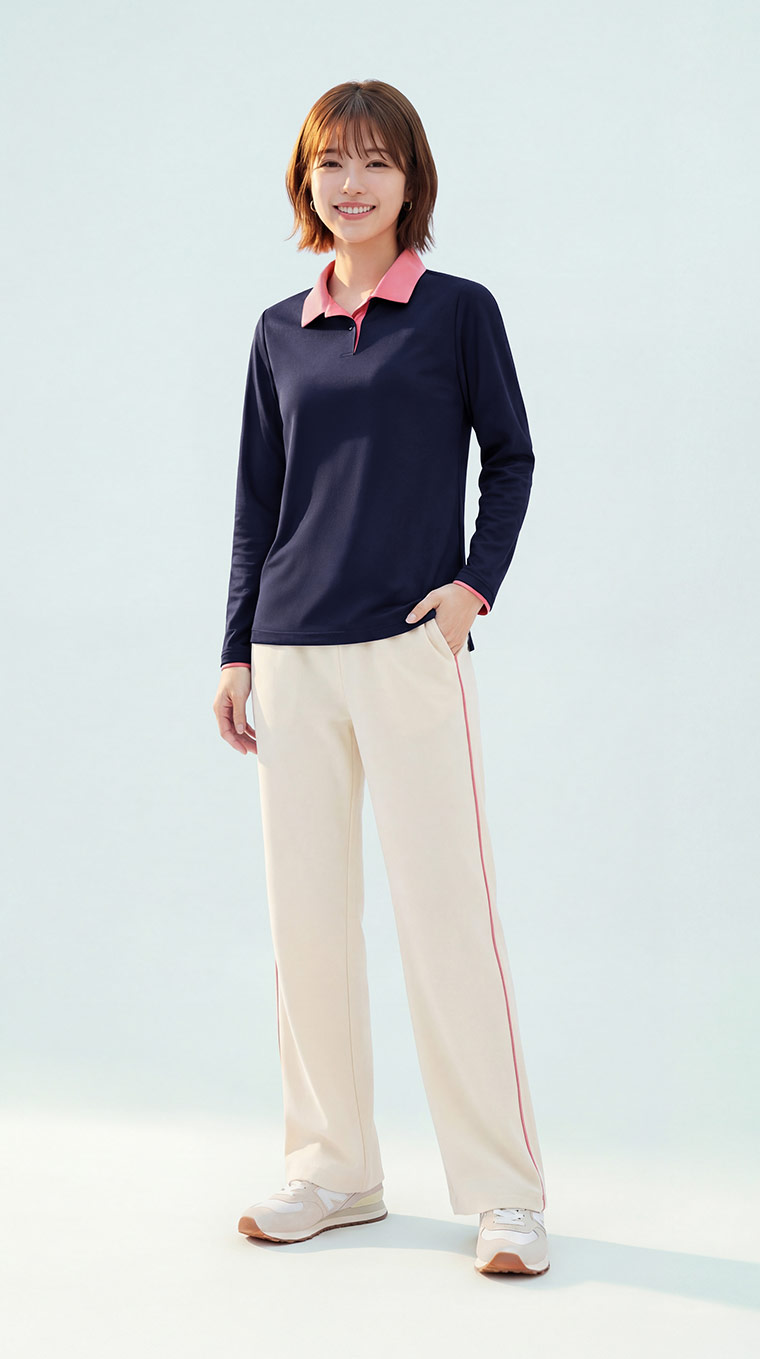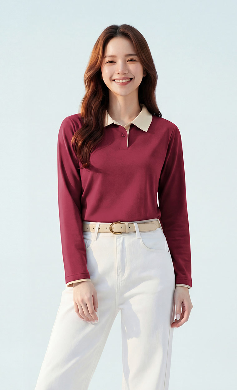 長袖Polo衫推薦|抗UV吸排 × 簡約拼色造型 × MIT環保材質|女裝 WOMEN|衣芙 EFShop