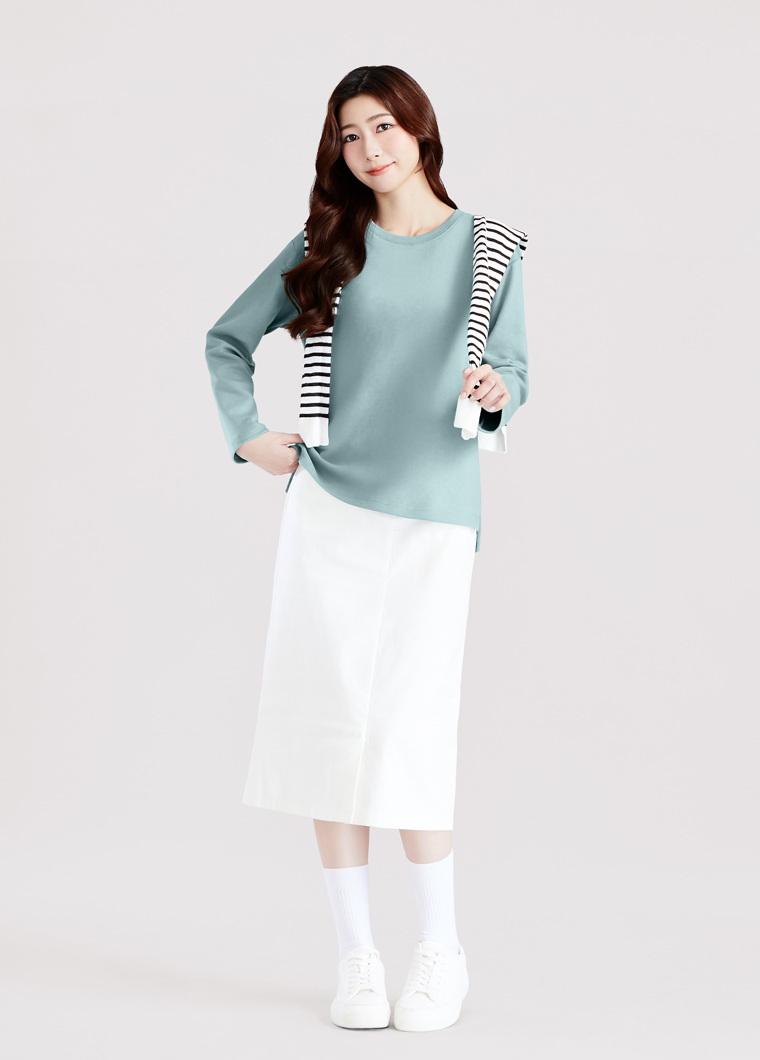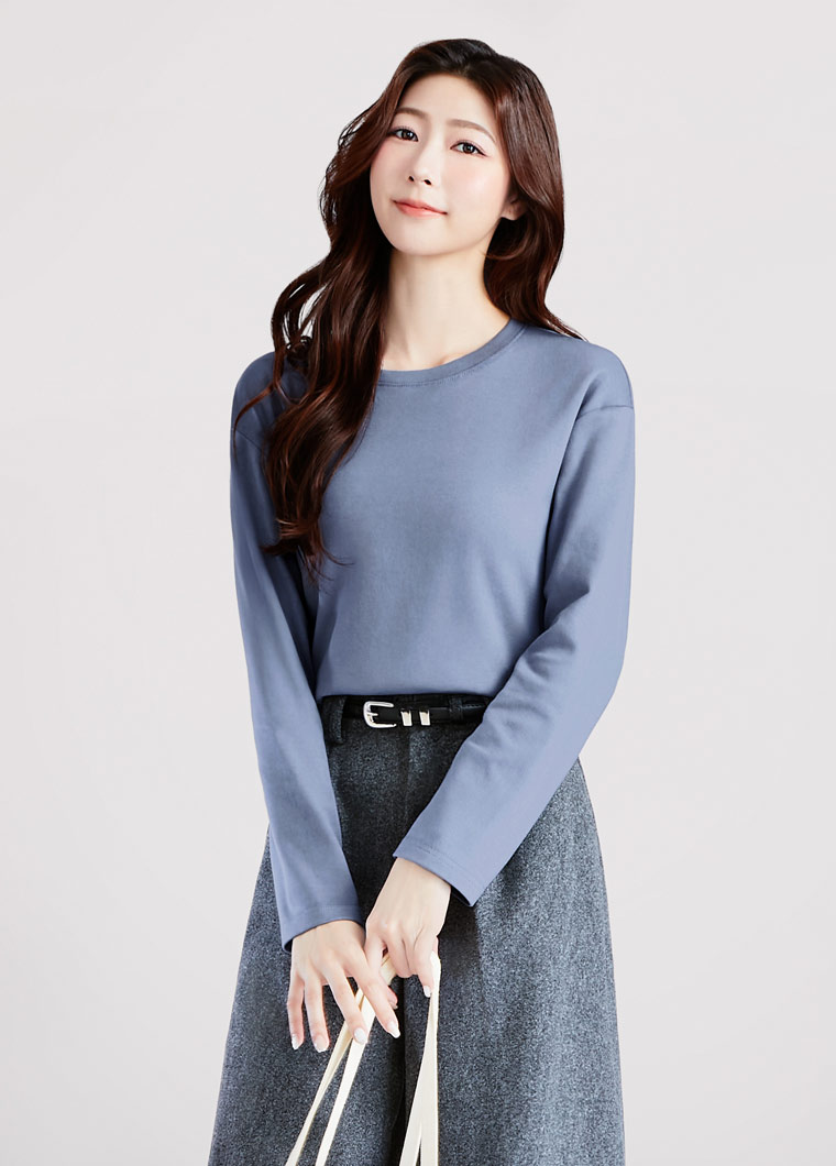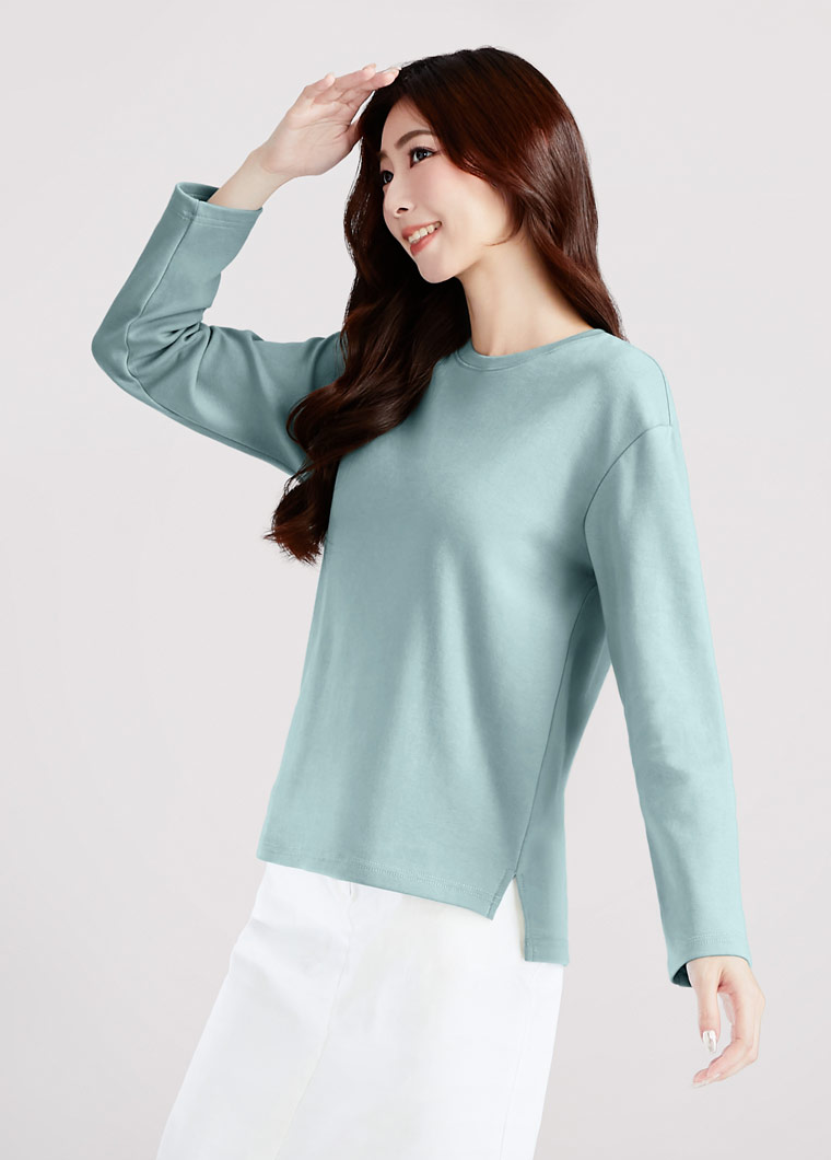 【限時$349】高磅棉質磨毛寬版長袖上衣湖綠