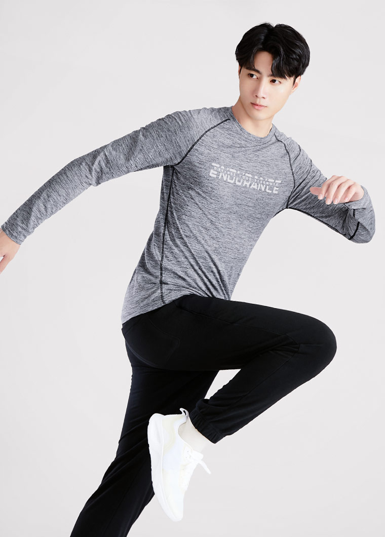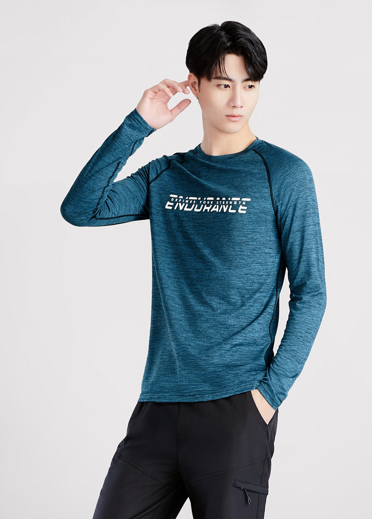 抗UV吸排運動字母印花長袖上衣-男裝麻黑