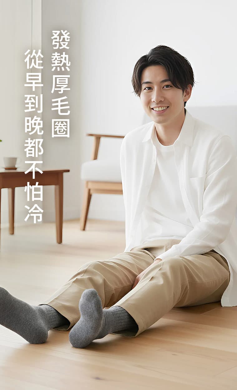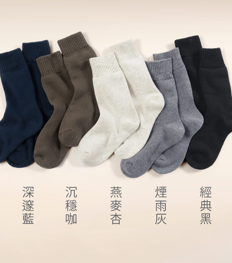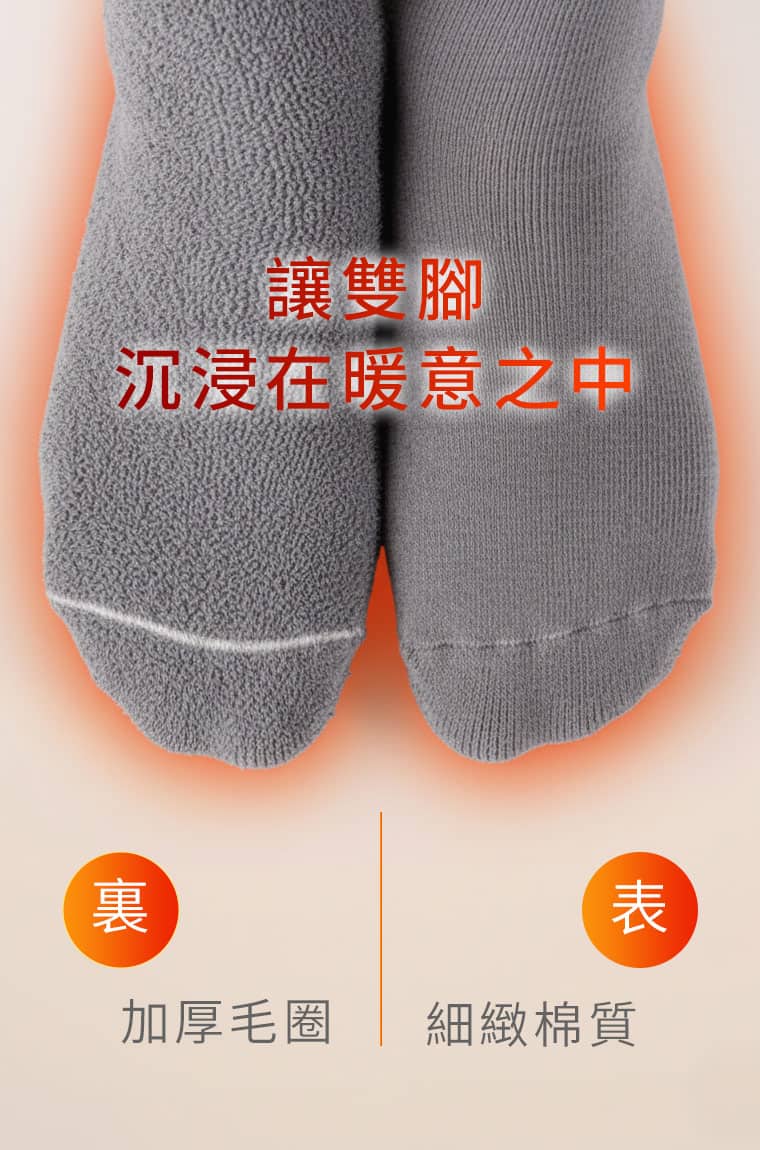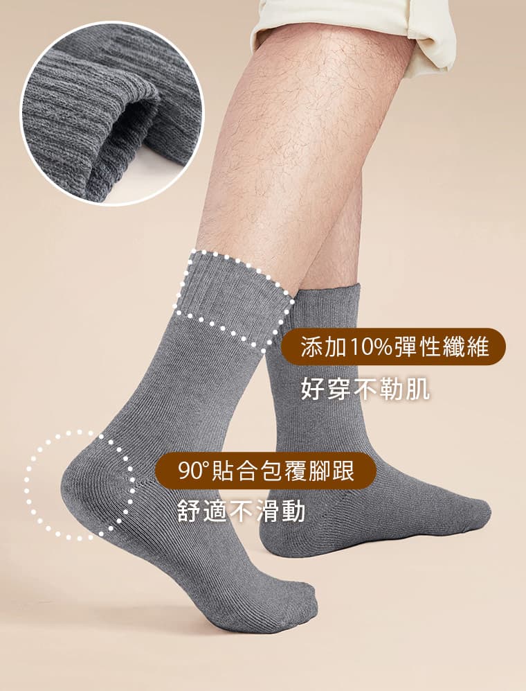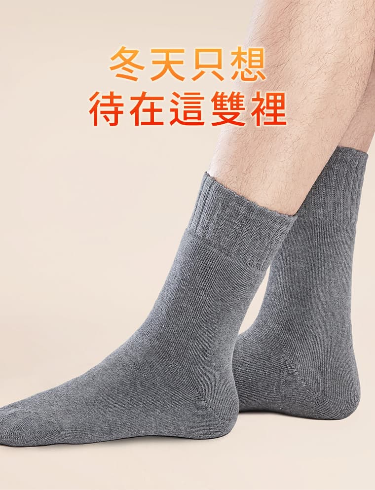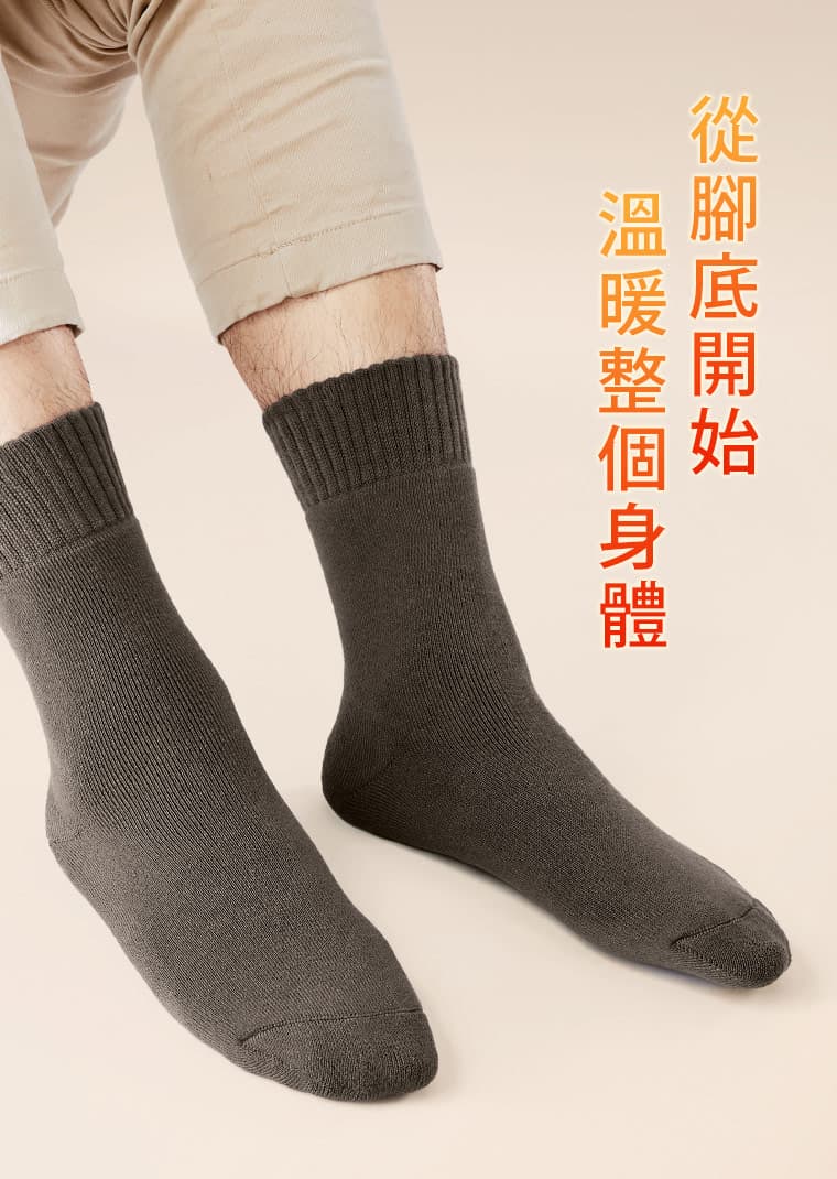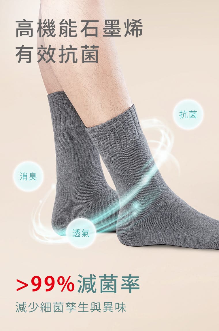 +℃ 超極暖.石墨烯抗菌發熱加厚毛圈中筒襪-男