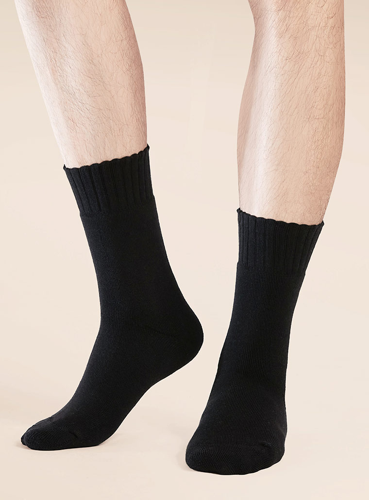 +℃ 超極暖.石墨烯抗菌發熱加厚毛圈中筒襪-男經典黑