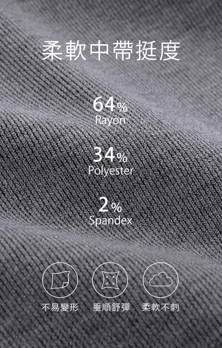 材質:64%嫘縈、34%聚酯纖維、2%彈性纖維