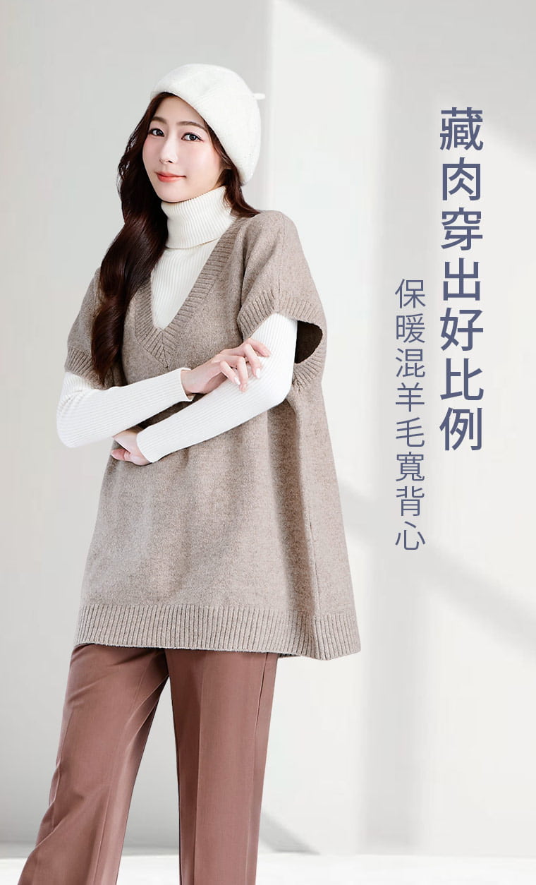 針織背心推薦|混羊毛材質保暖蓬鬆 × 寬版打造率性層次感|女裝 WOMEN|衣芙 EFShop