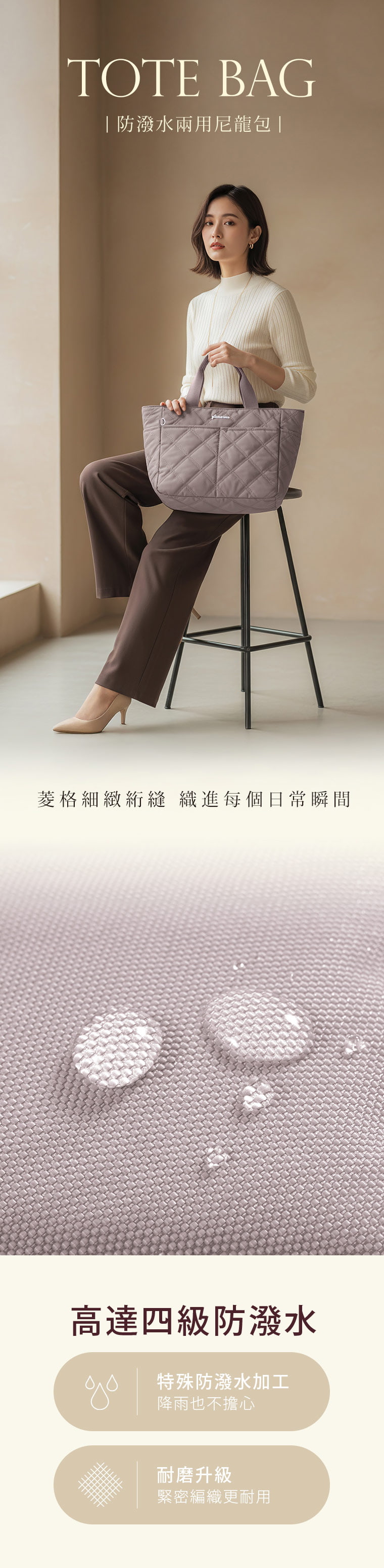 手提包推薦|防潑水尼龍材質 × 菱格縫線立體質感 × 手提肩背兩用設計實用有型|配件 Accessories|衣芙 EFShop