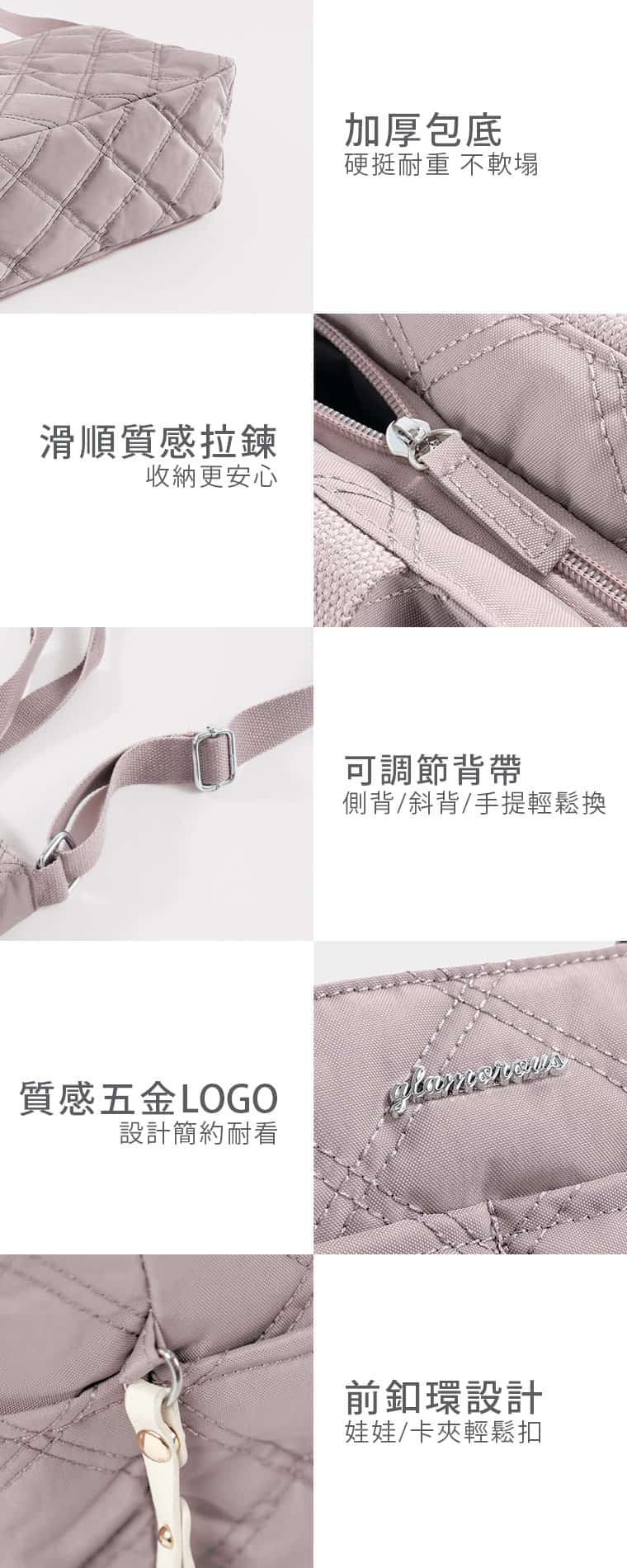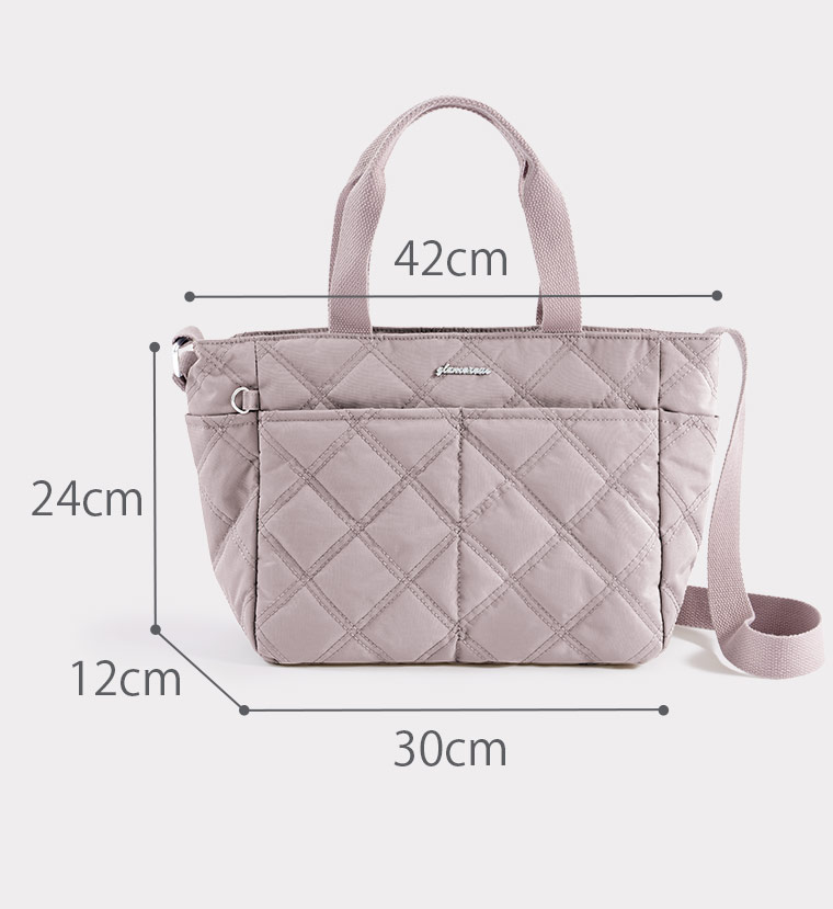 菱格縫線防潑水兩用尼龍手提包灰芋紫