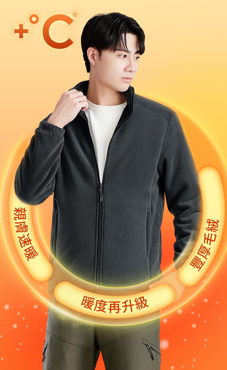 +℃ 暖暖毛絨抗寒保暖立領外套-男裝
