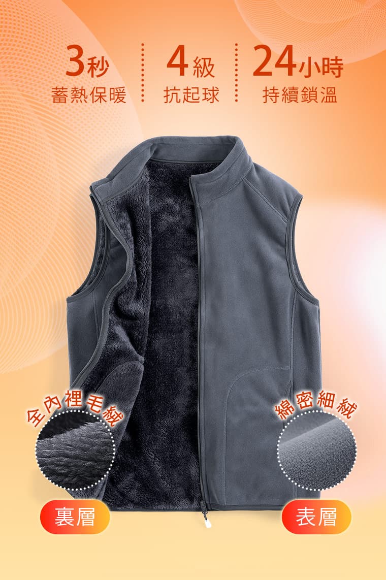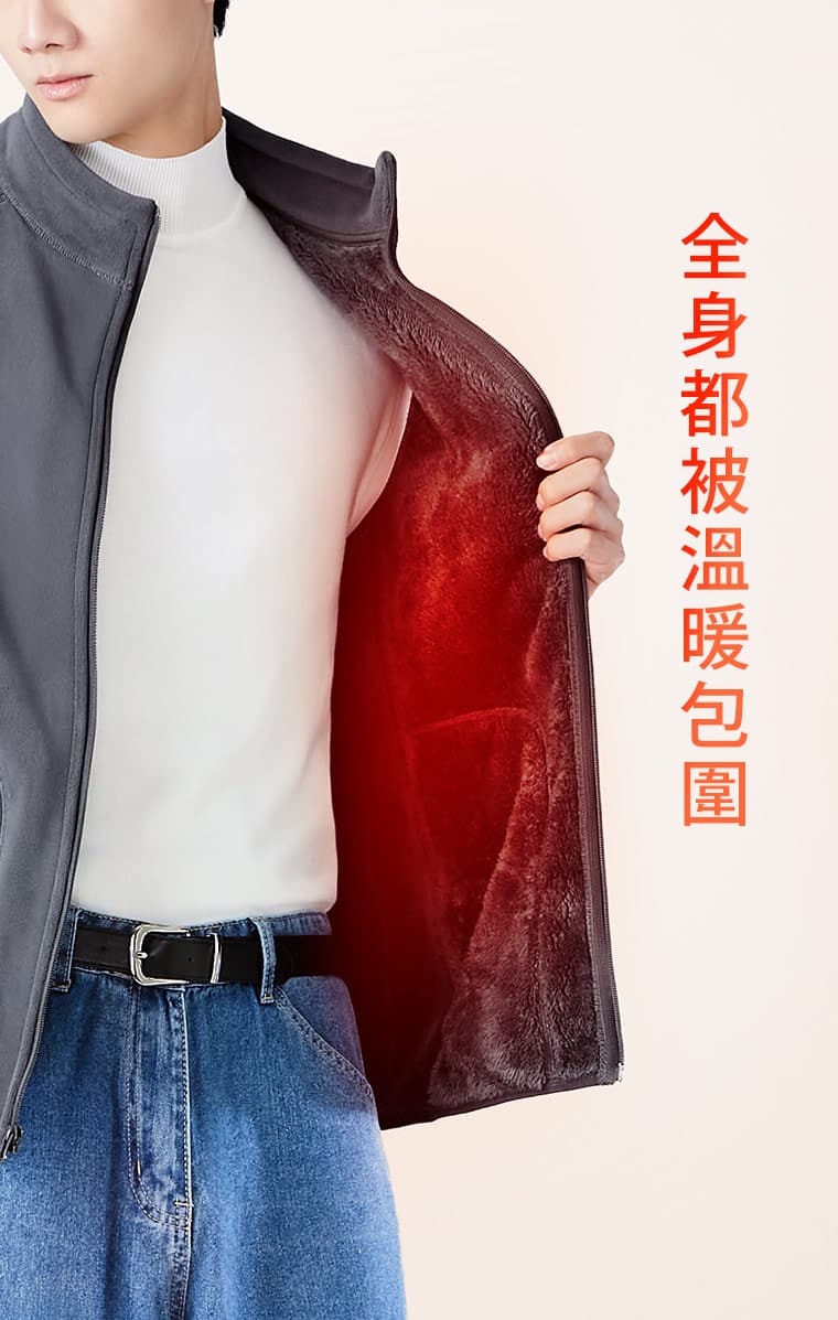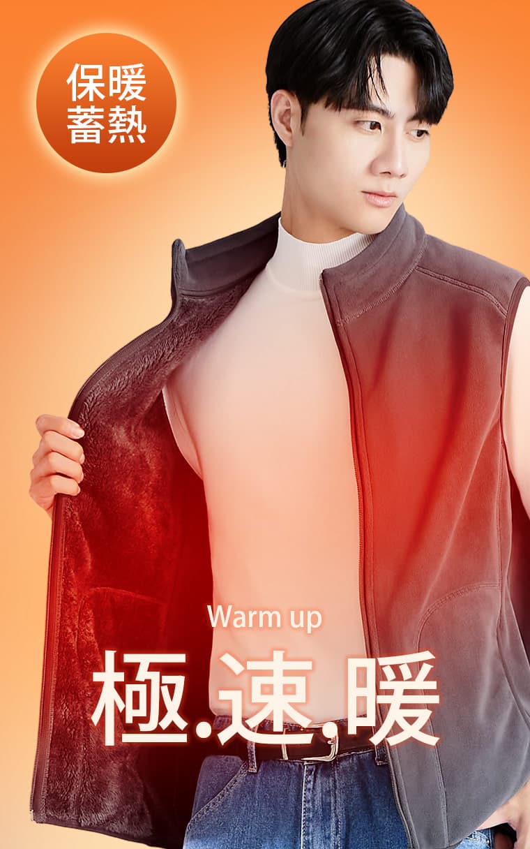 +℃ 暖暖毛絨抗寒保暖立領背心-男裝