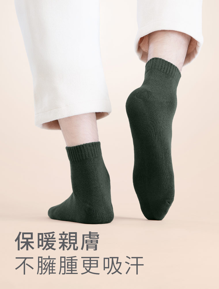 【買一送一】+℃ 暖科技-抗寒保暖發熱襪-男松柏綠
