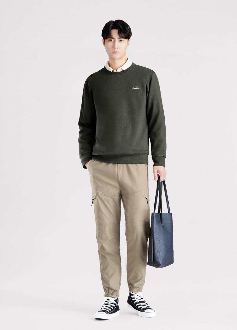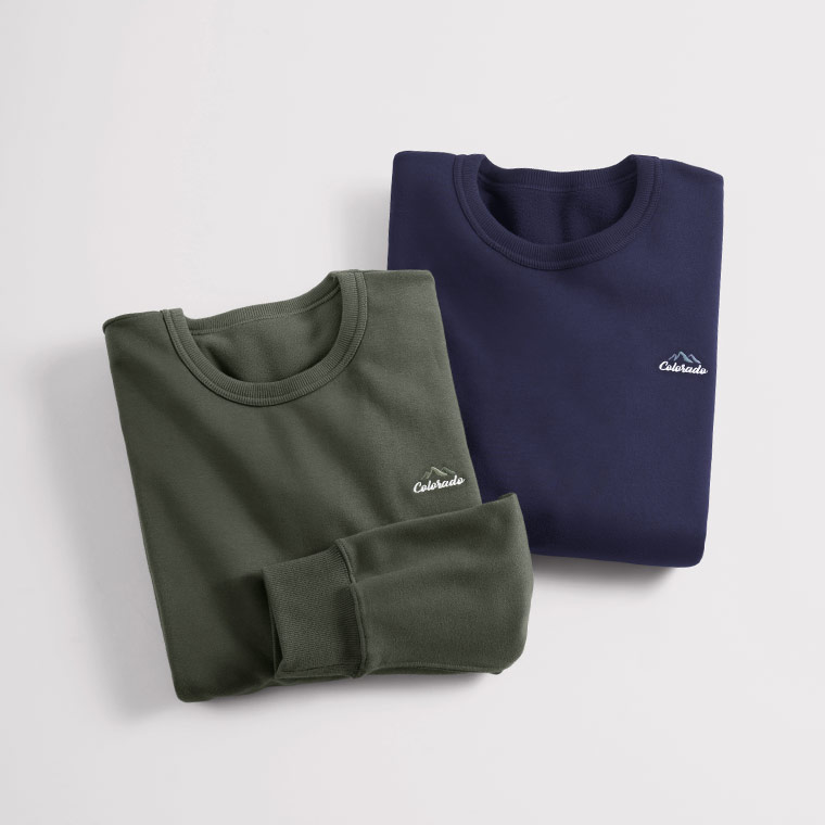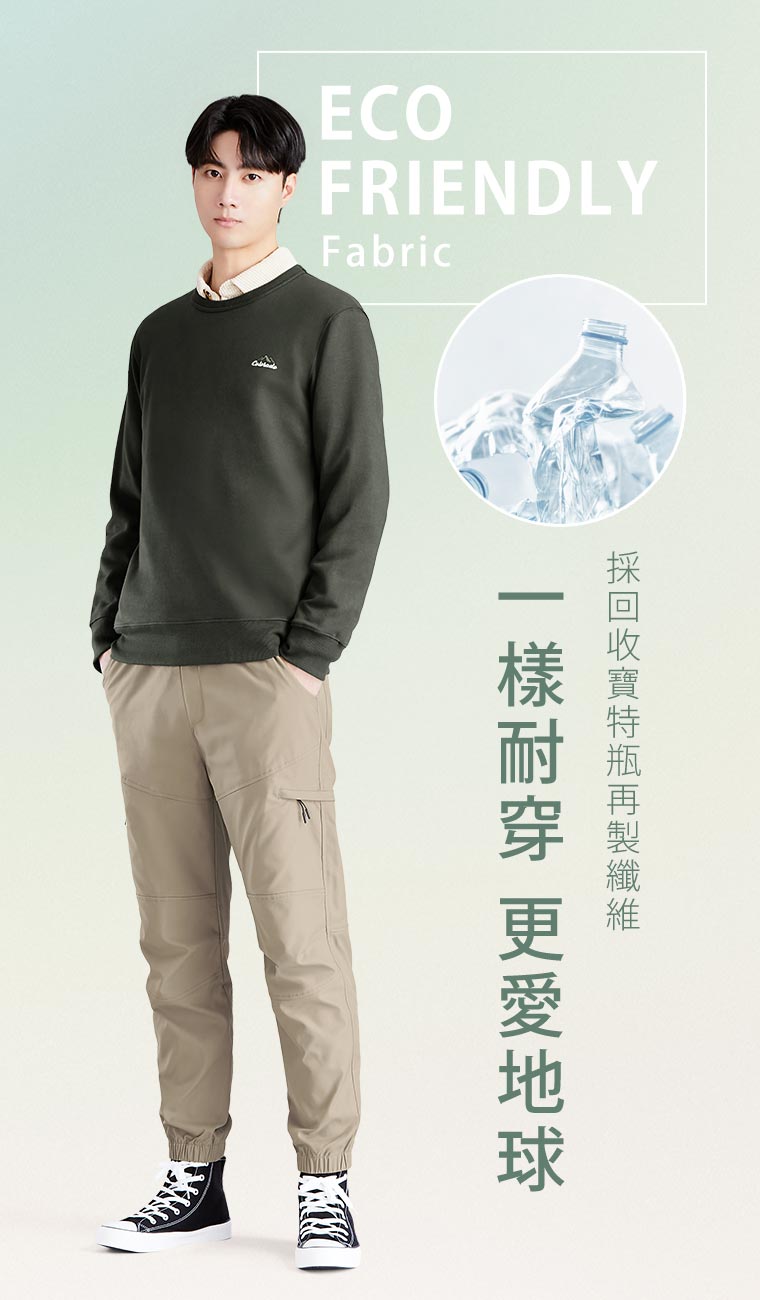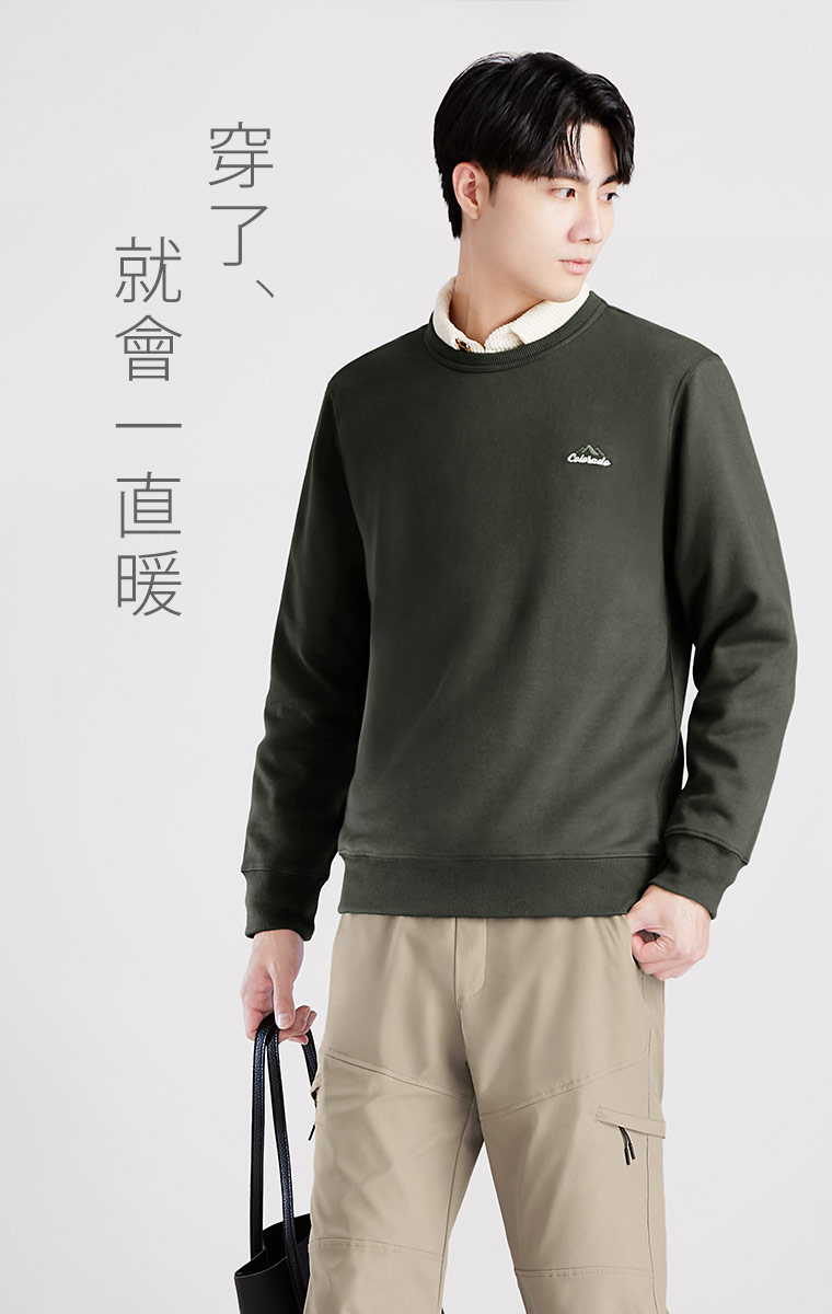 保暖.MIT永續環保材質-山脈刺繡刷毛大學T-男裝