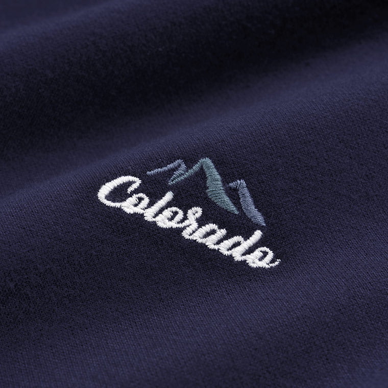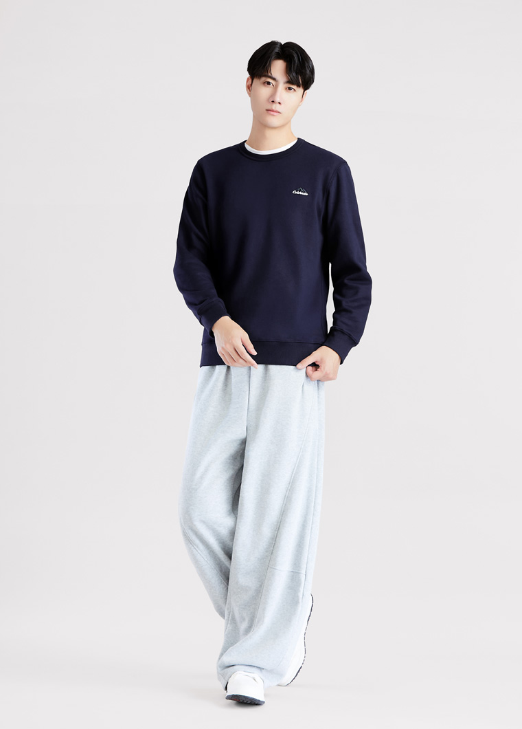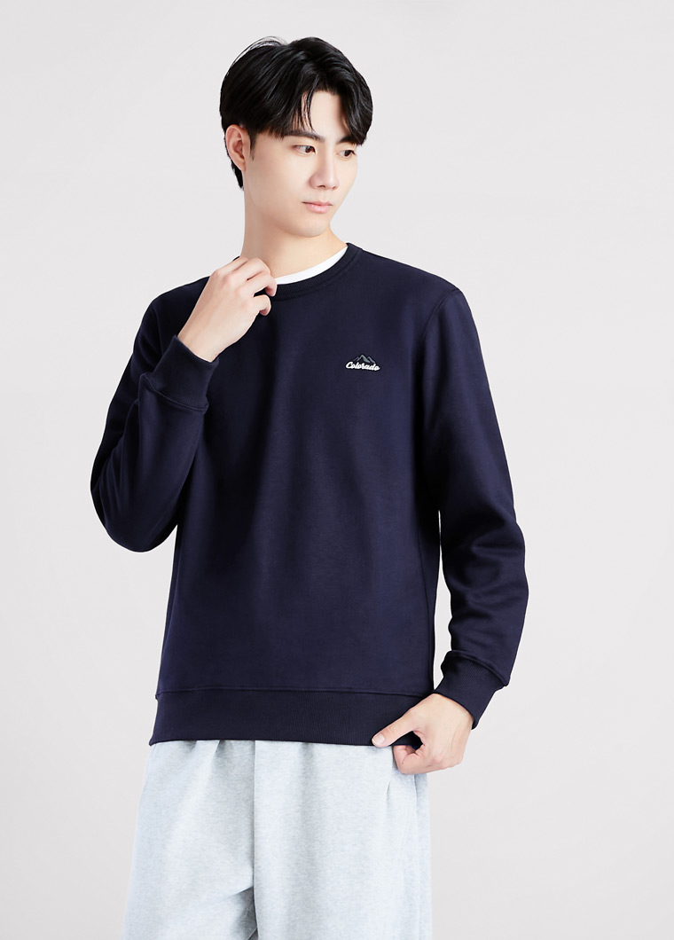保暖.MIT永續環保材質-山脈刺繡刷毛大學T-男裝深藍