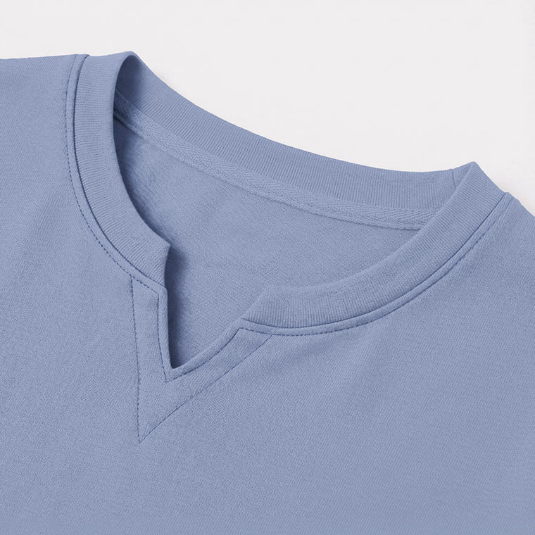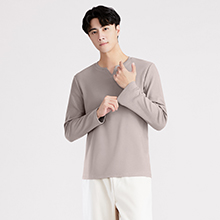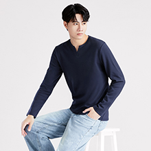 高磅棉質磨毛小V領長袖上衣-男裝