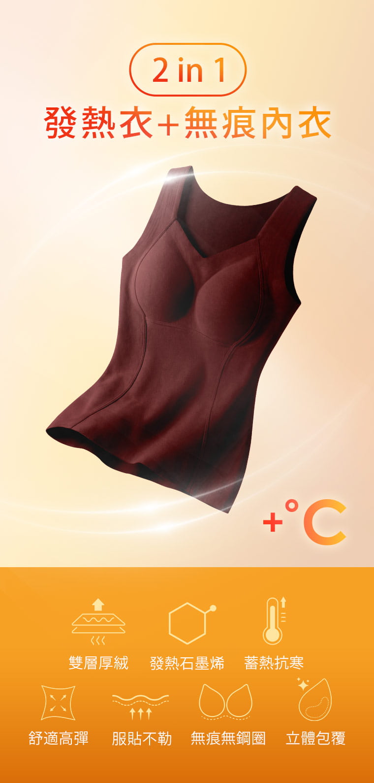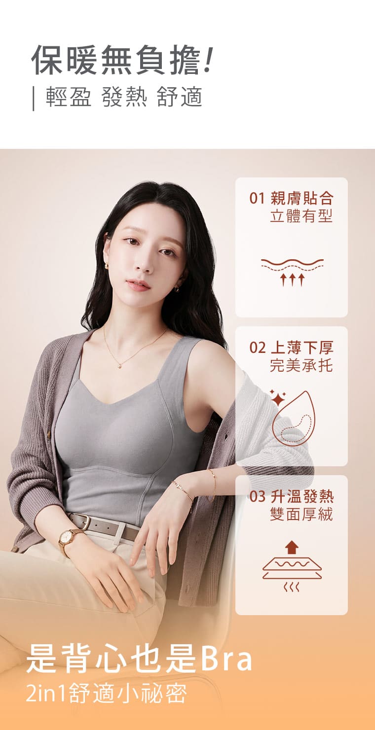 發熱Bra背心推薦|石墨烯雙面厚絨蓄熱 ×一體式設計穩定支撐|女裝 WOMEN|衣芙 EFShop