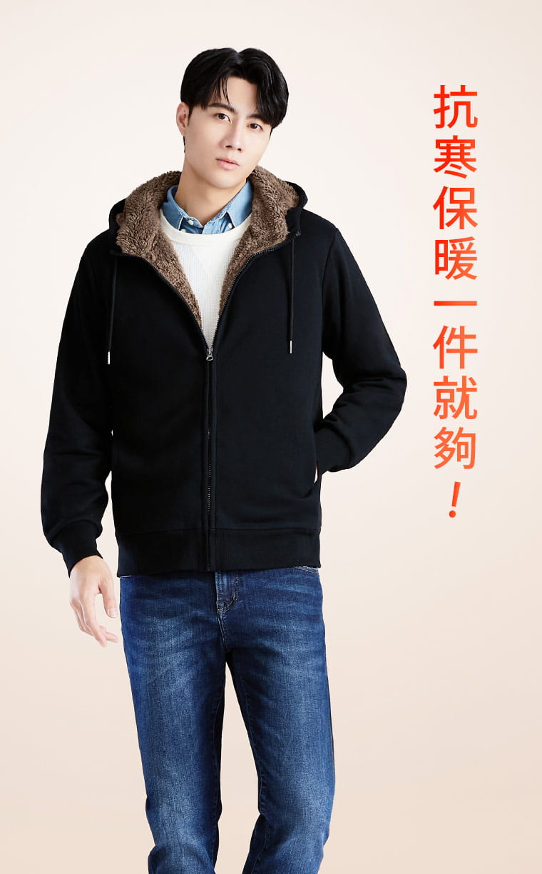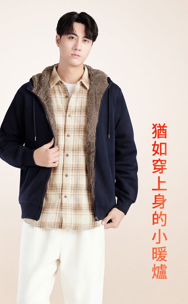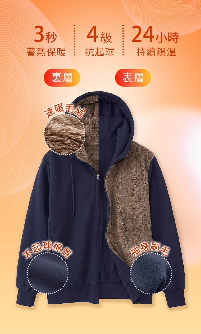 +℃ 極速暖毛絨抗寒保暖連帽外套-男裝