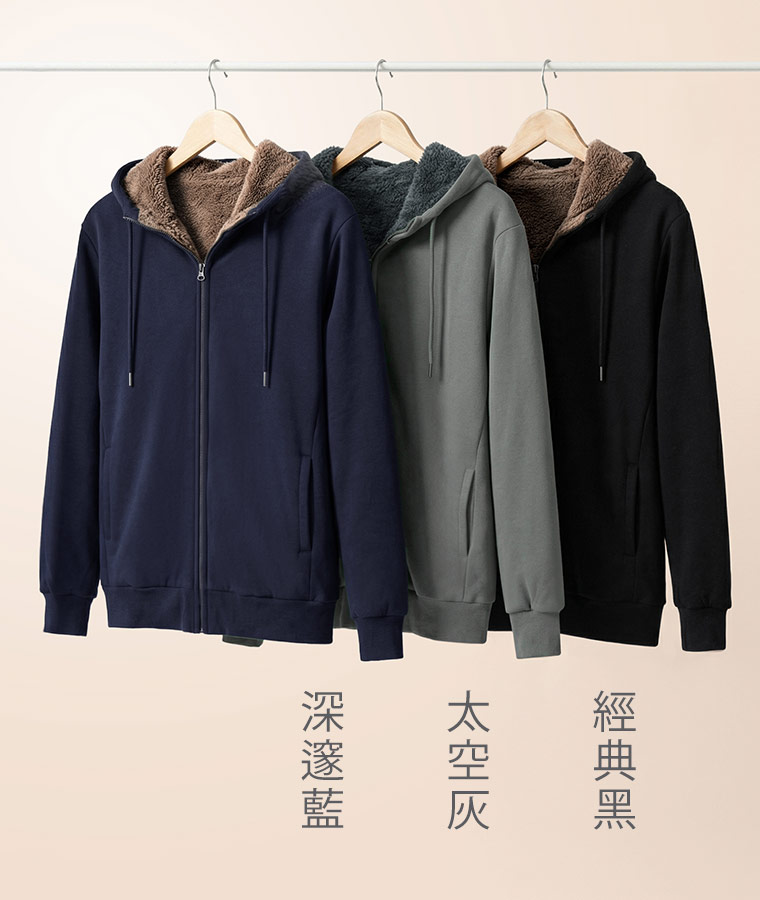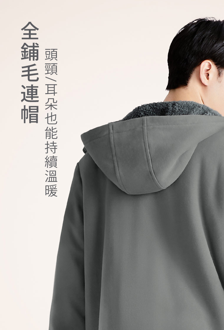 +℃ 極速暖毛絨抗寒保暖連帽外套-男裝太空灰