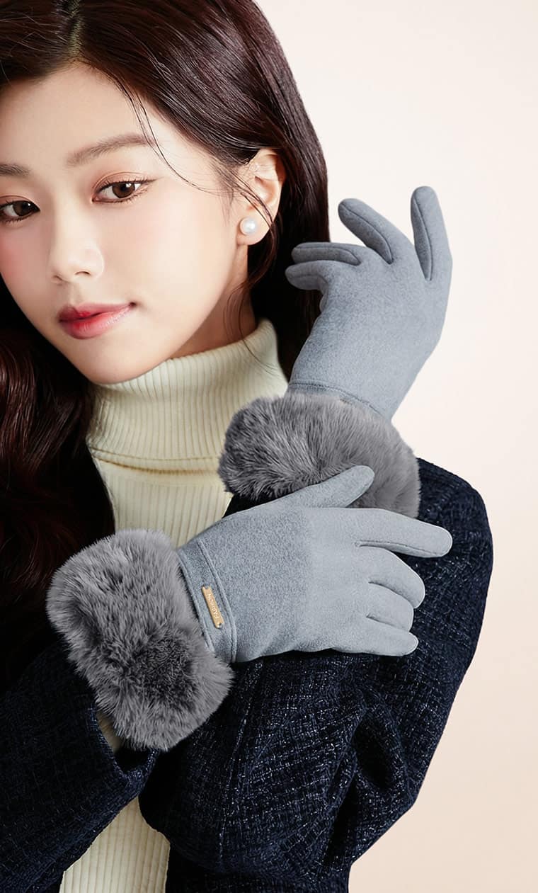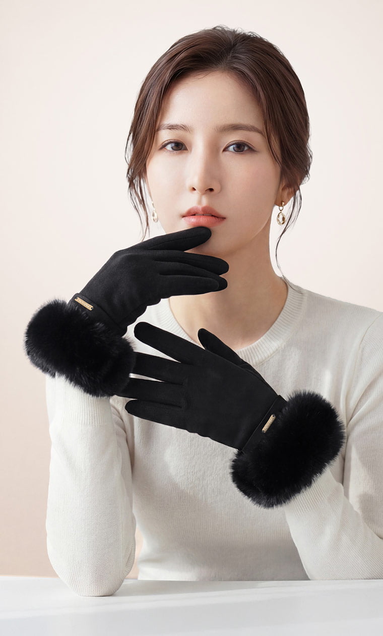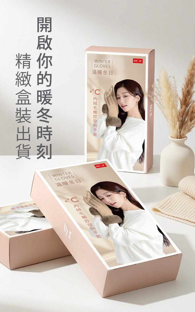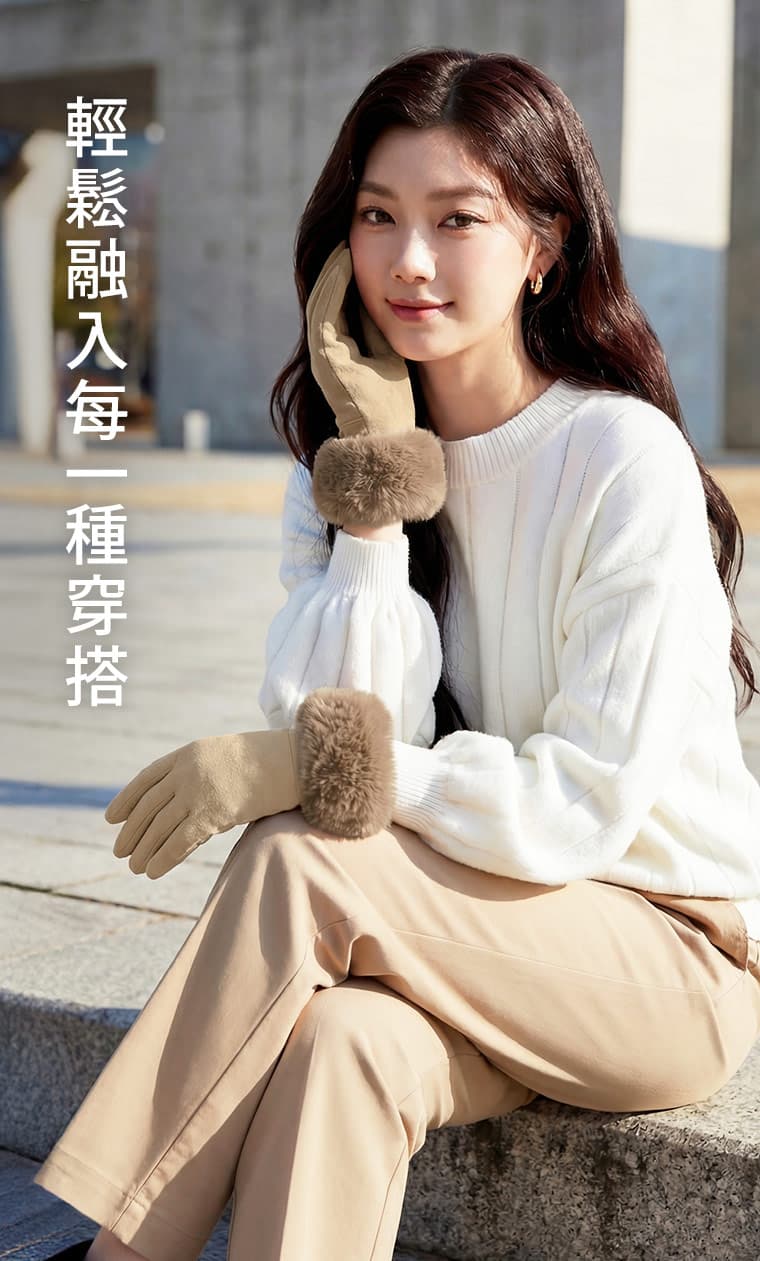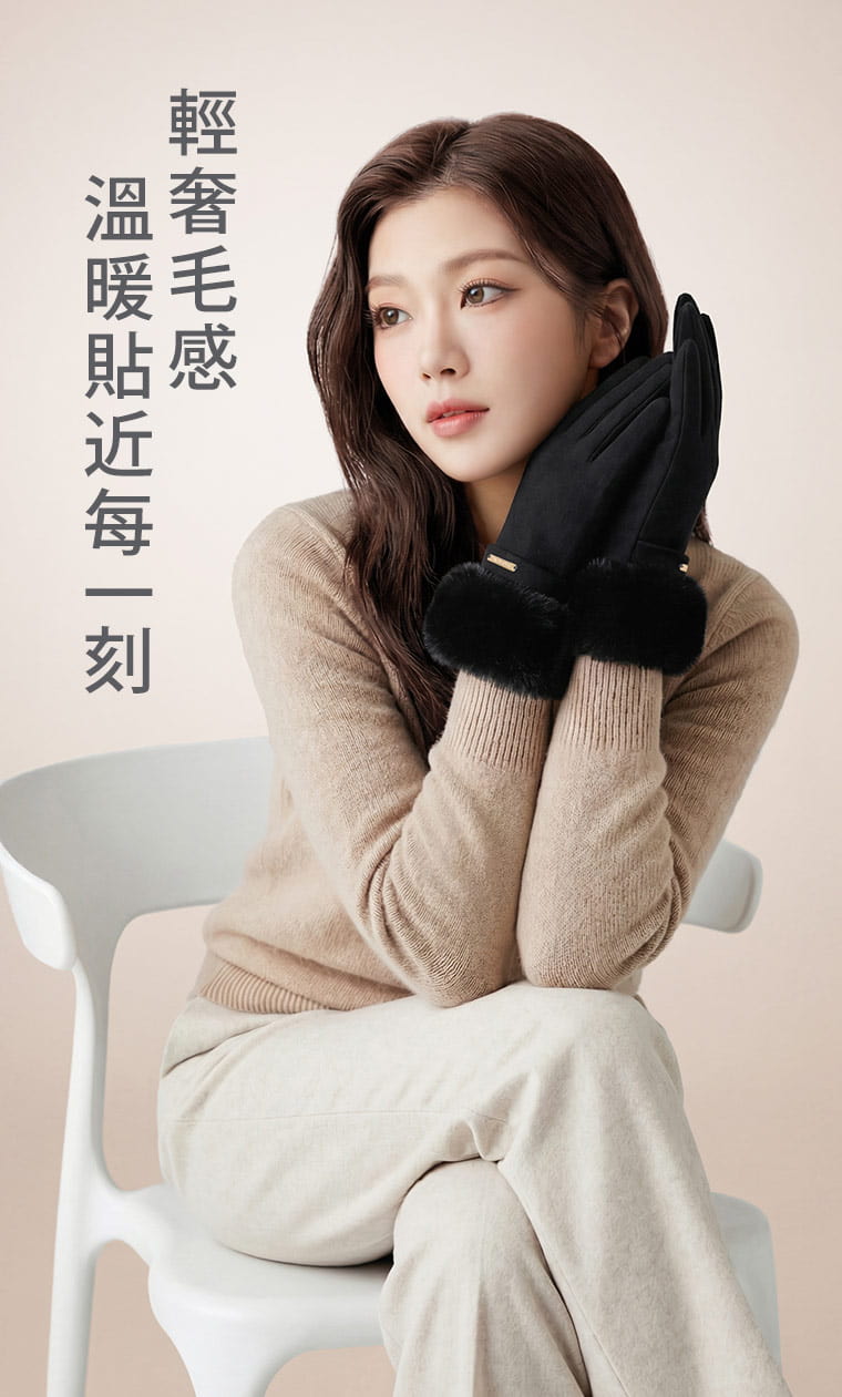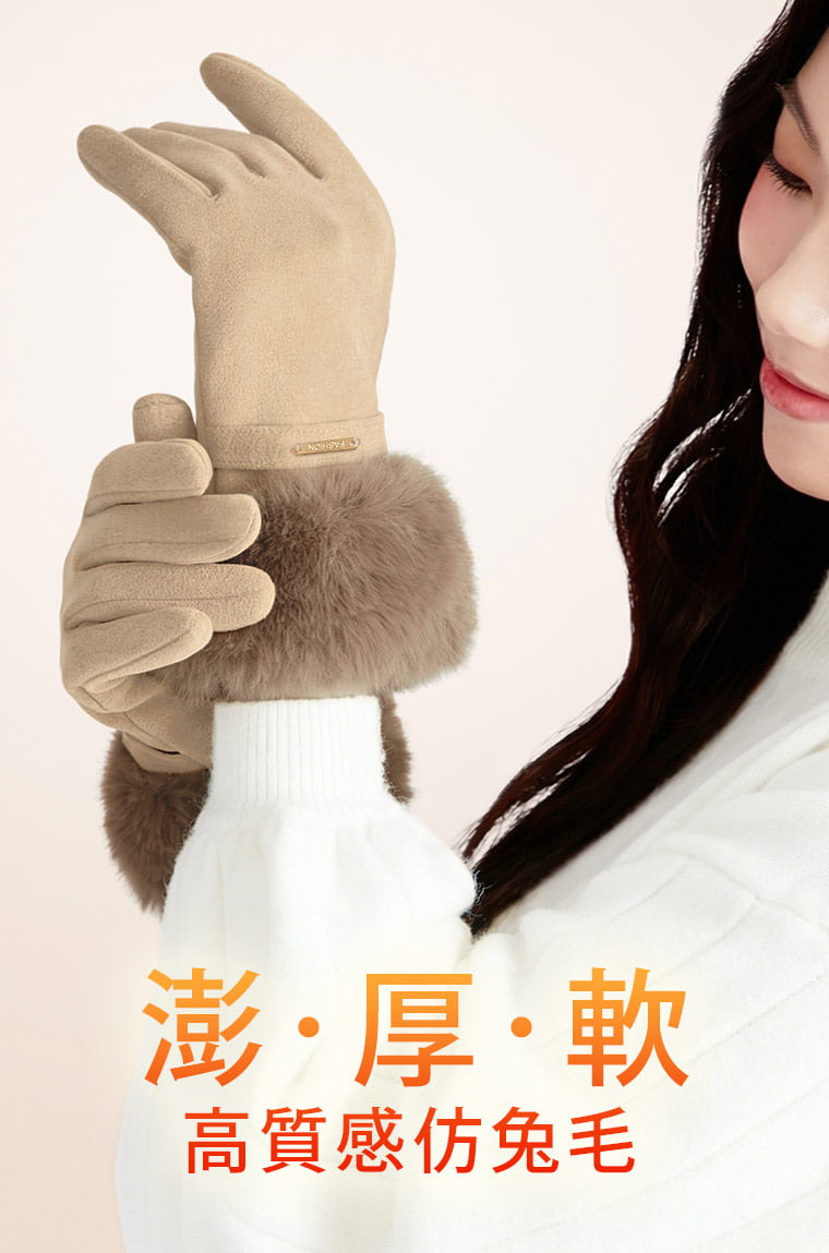 +℃ 輕奢內絨毛觸控發熱手套