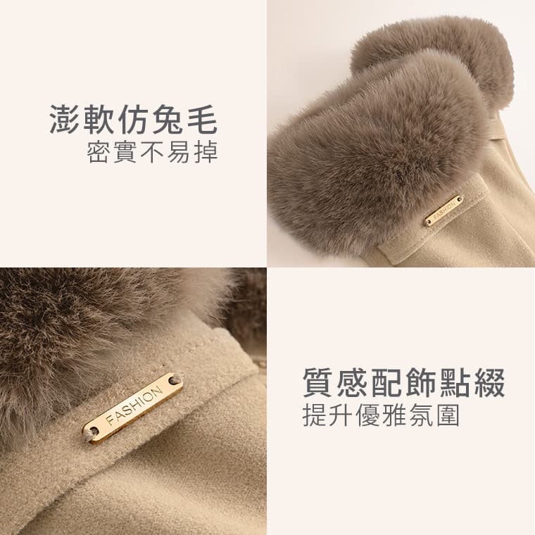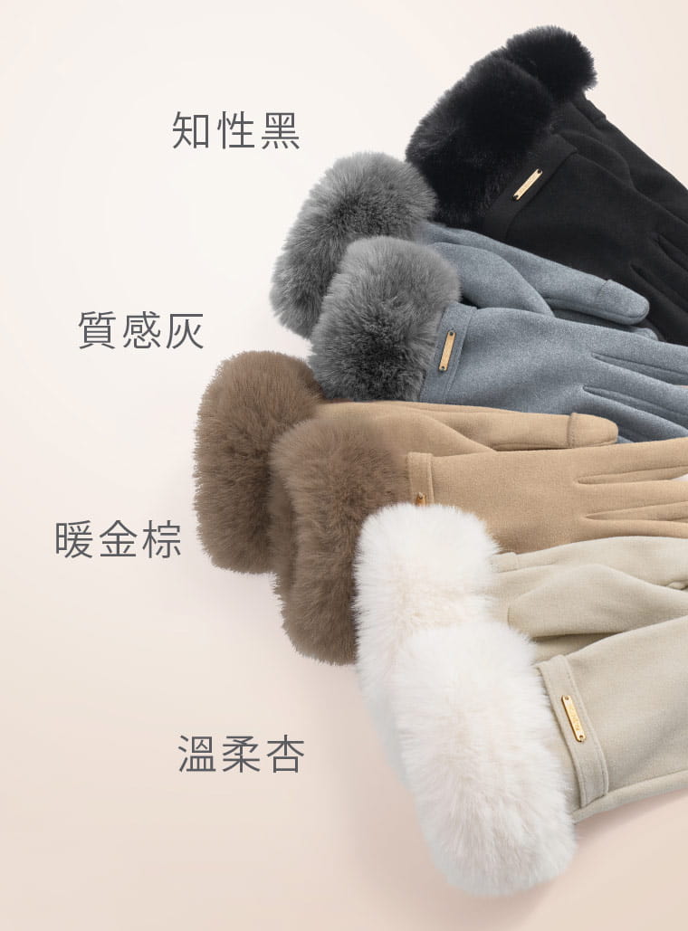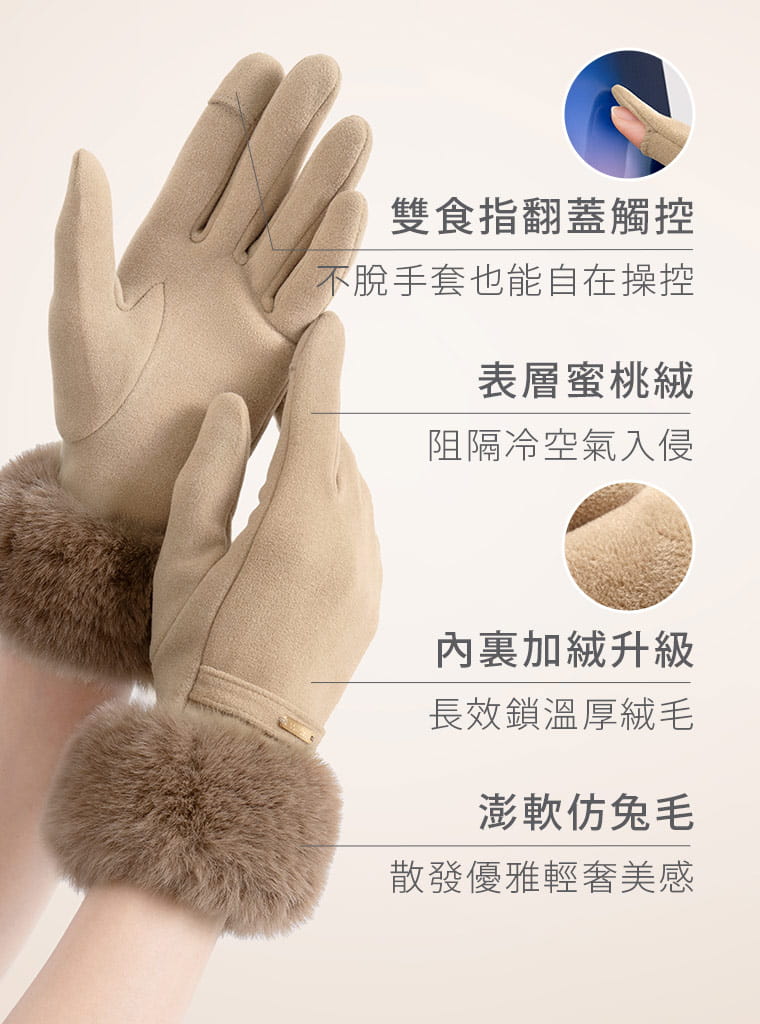 +℃ 輕奢內絨毛觸控發熱手套溫柔杏