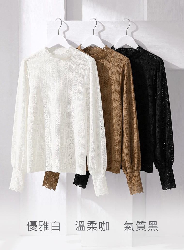 蕾絲上衣推薦|法式鏤空優雅蕾絲 × 半高領設計修飾頸線|女裝 WOMEN|衣芙 EFShop