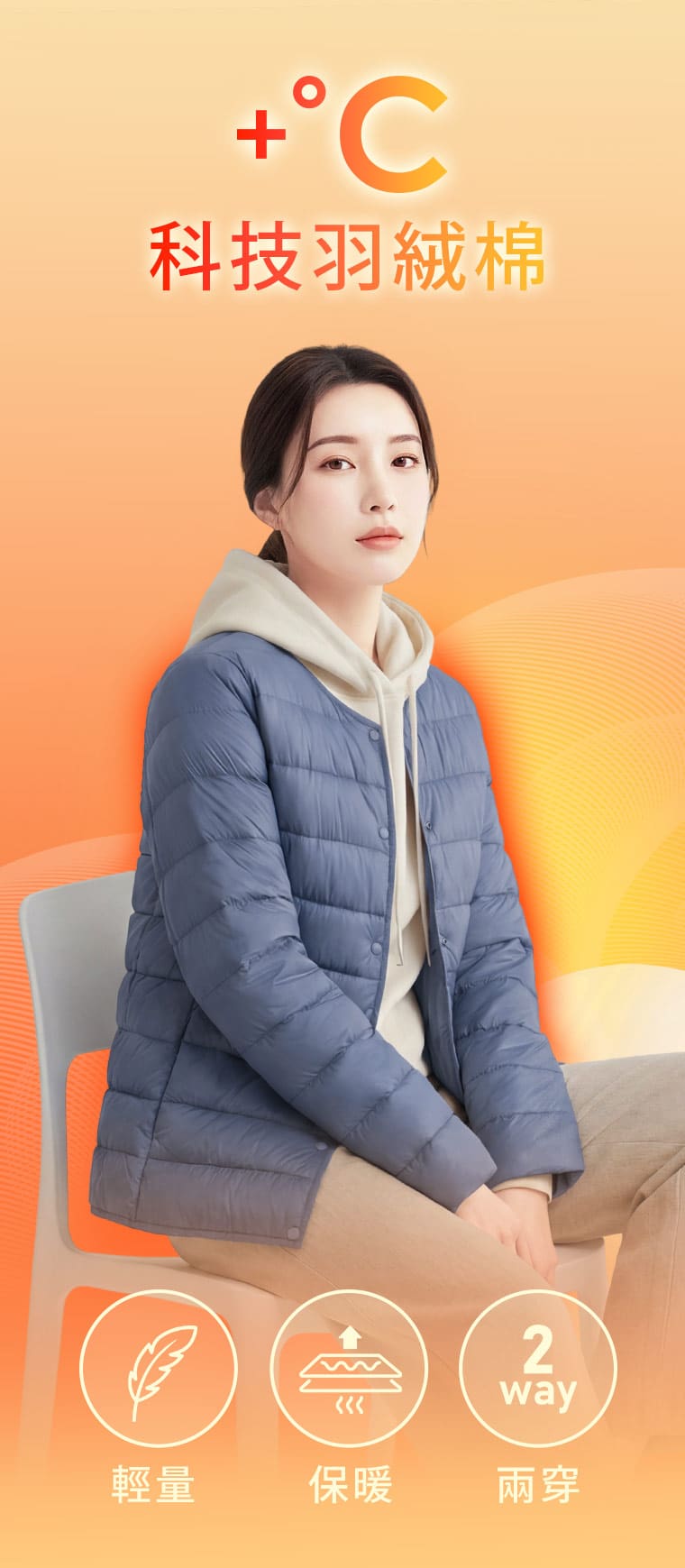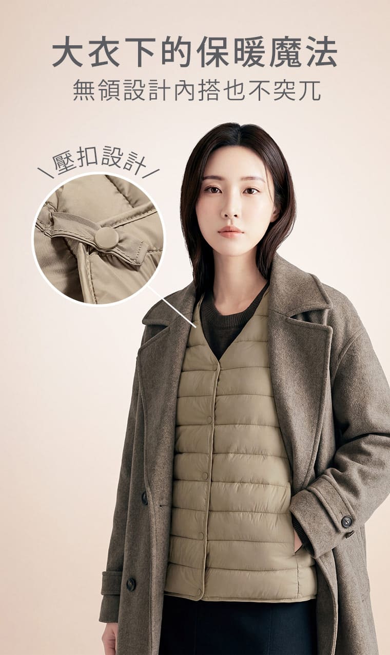+℃ 保暖外套推薦|科技羽絨棉輕盈蓄熱 × 無領設計俐落好搭|女裝 WOMEN|衣芙 EFShop