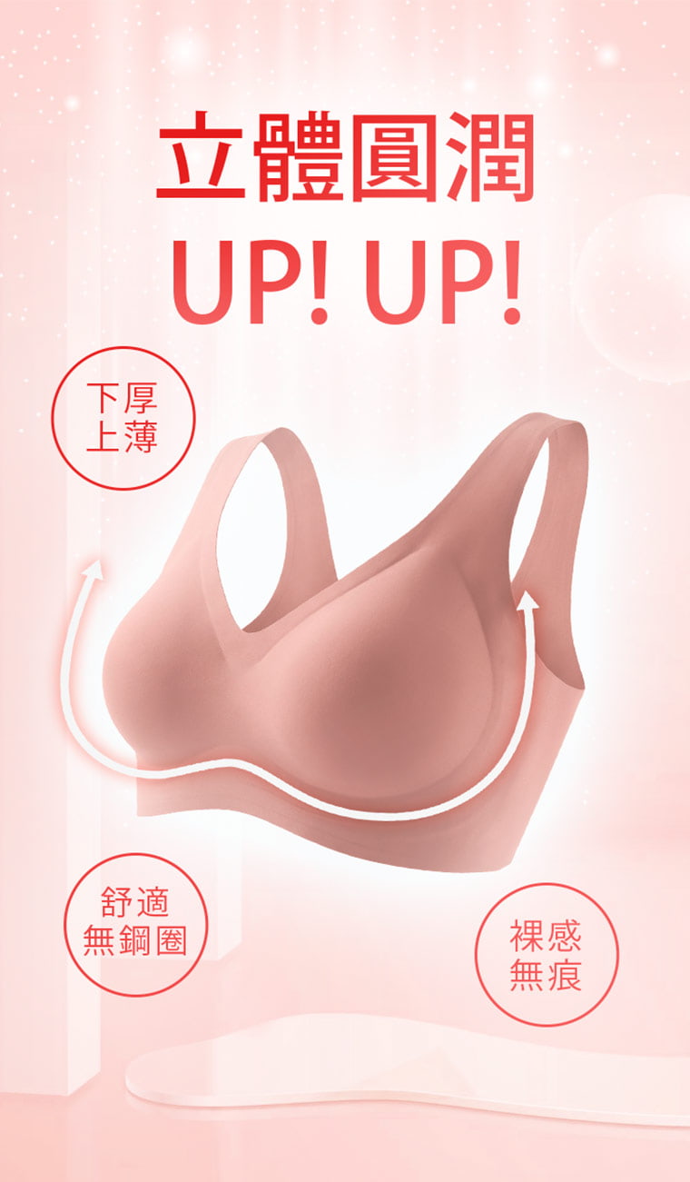 Airyn 集中提托UP!下厚上薄無鋼圈無痕內衣花嫣粉
