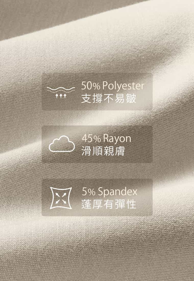 50%聚酯纖維、45%嫘縈、5%彈性纖維