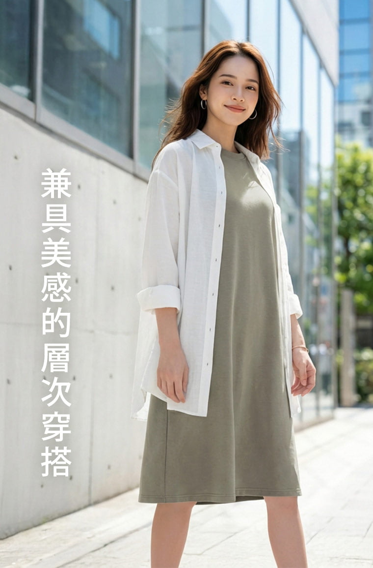 休閒洋裝推薦|輕氧棉空氣感輪廓 × 自然垂墜修飾線條|女裝 WOMEN|衣芙 EFShop