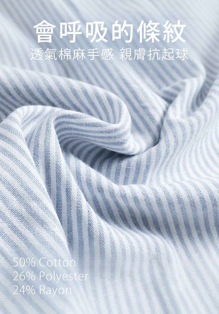 50%棉、26%聚酯纖維、24%嫘縈