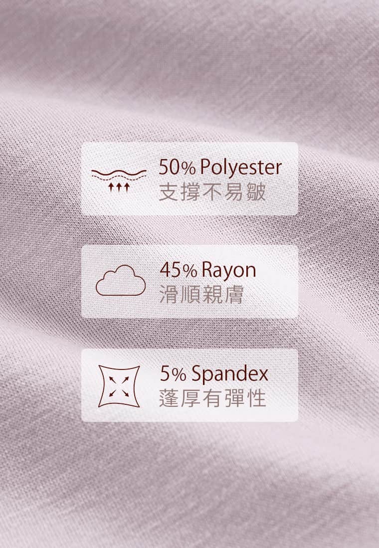 50%聚酯纖維、45%嫘縈、5%彈性纖維