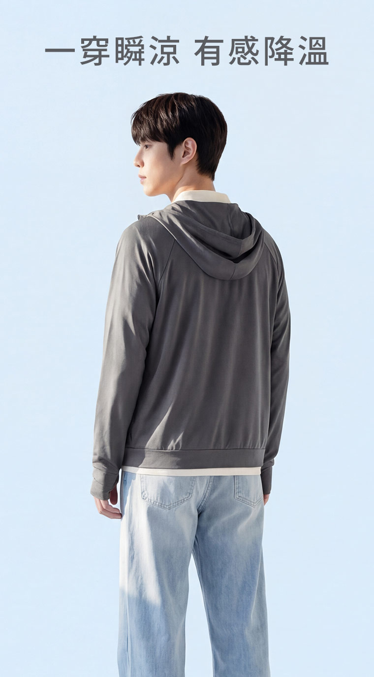 -°C 冰感【UPF50+防曬】網眼連帽涼感外套-男裝星空灰