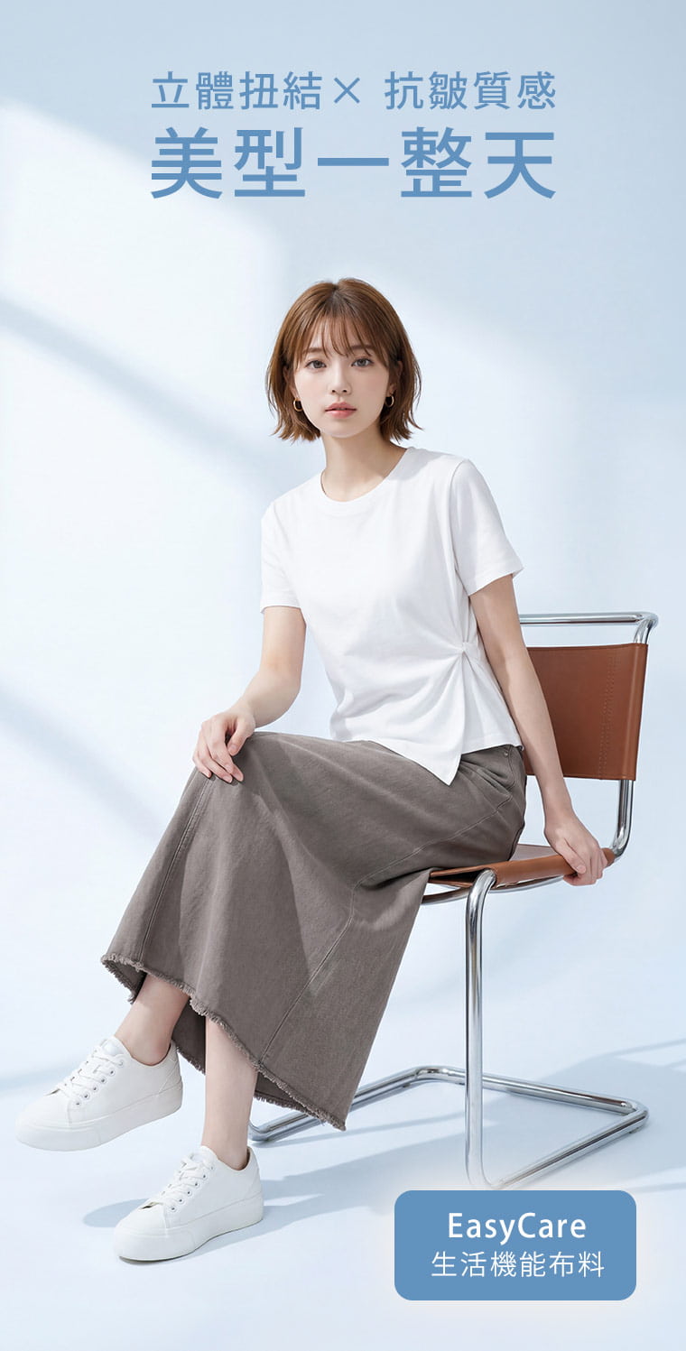 EasyCare 扭結設計上衣|修飾腰線顯瘦感 × 親膚皺抗好整理|女裝 WOMEN|衣芙 EFShop
