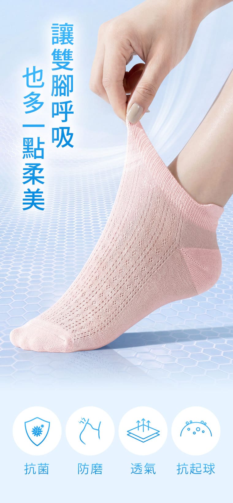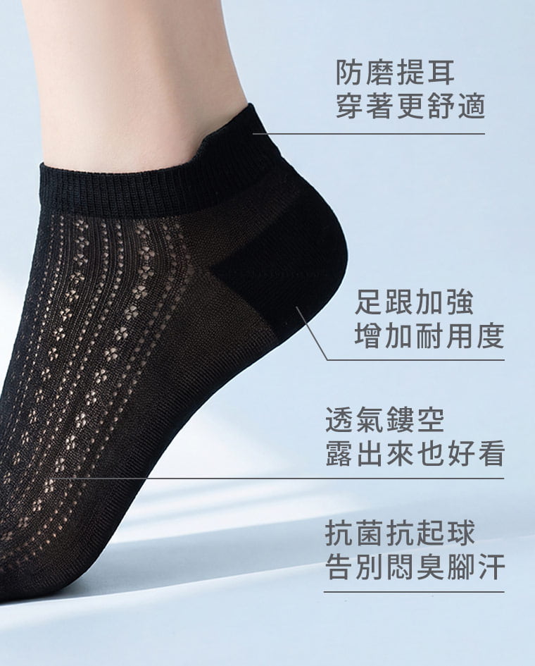 透氣鏤空抗菌防磨短襪
