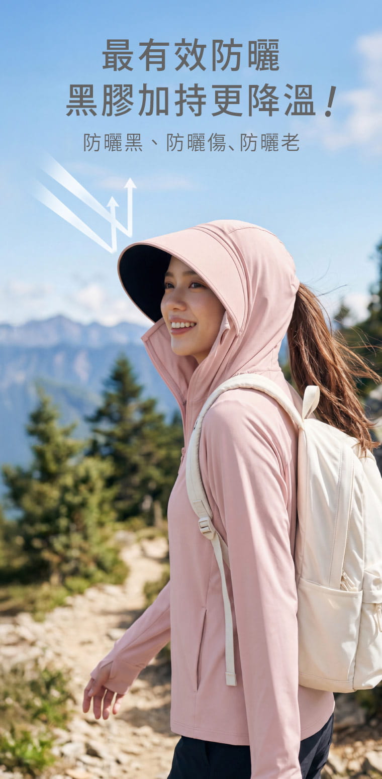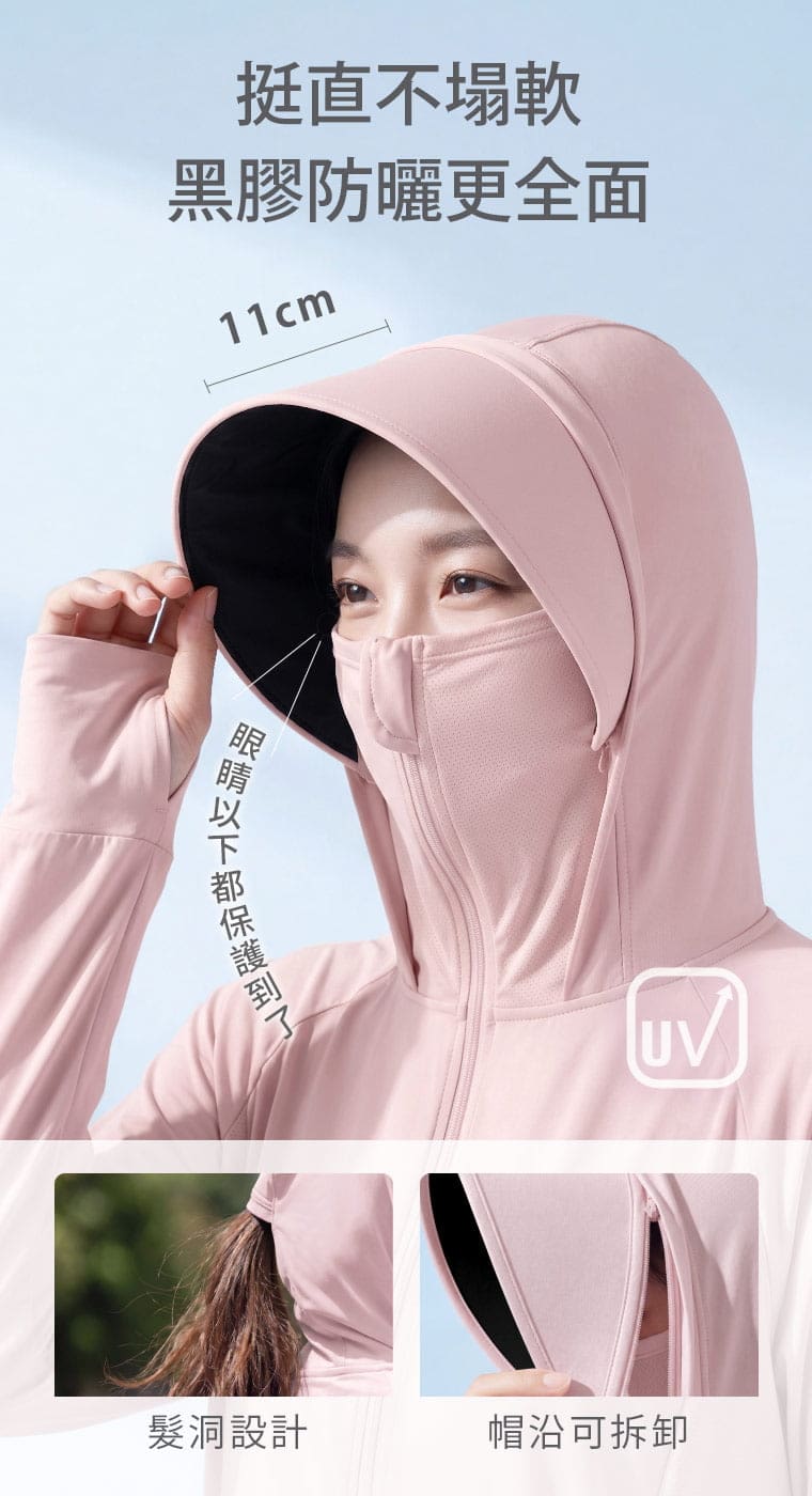 -°C 機能冰涼感【UPF50+防曬】可拆黑膠帽沿外套