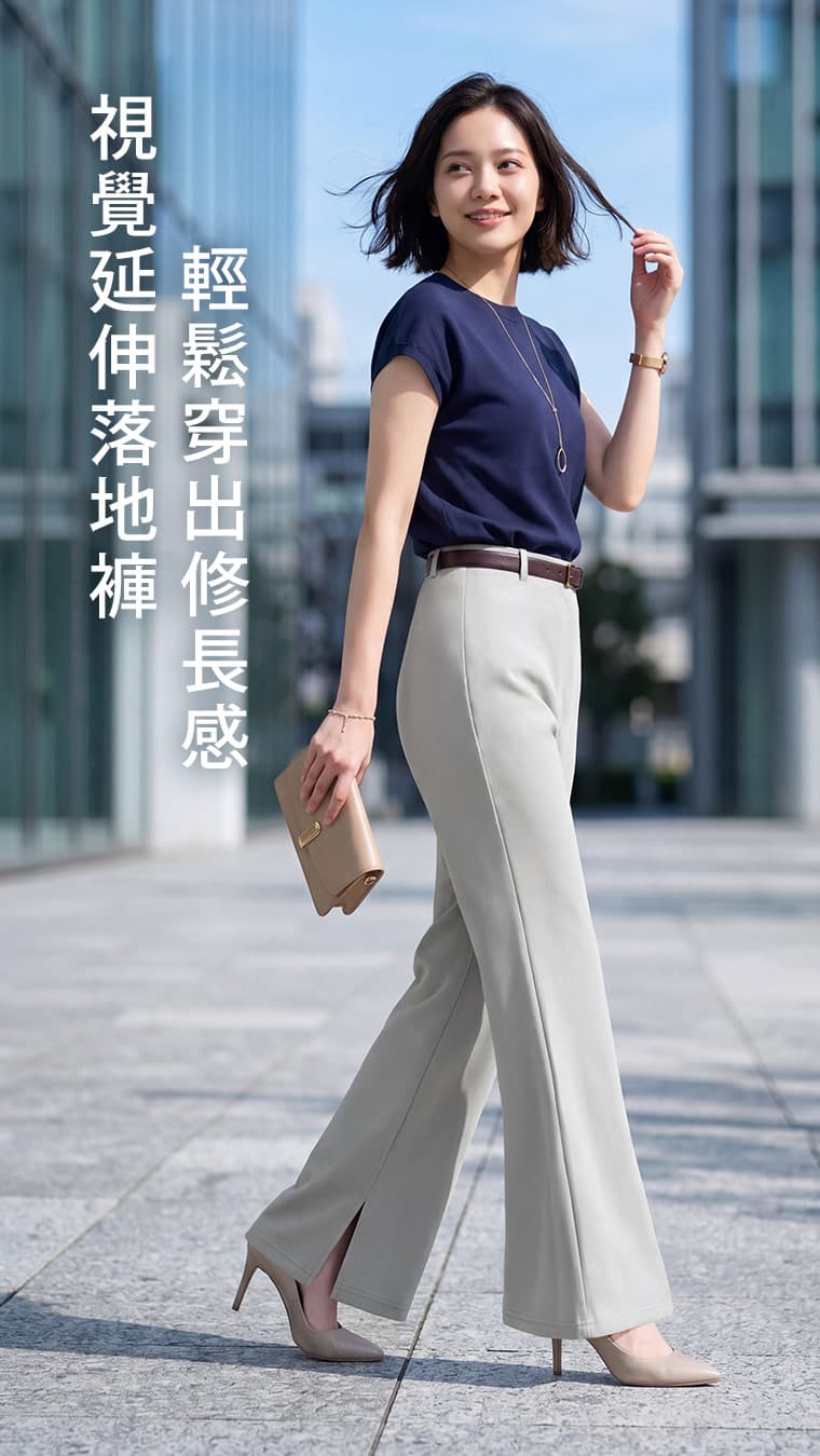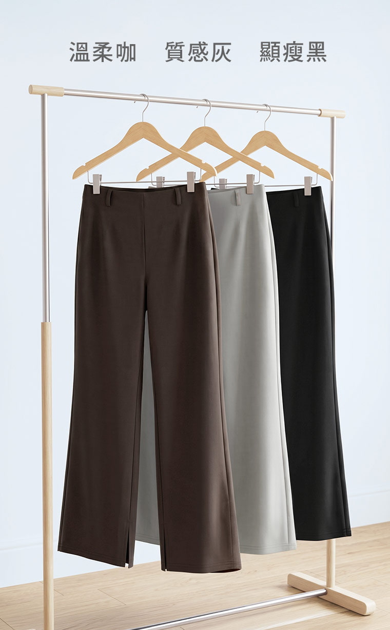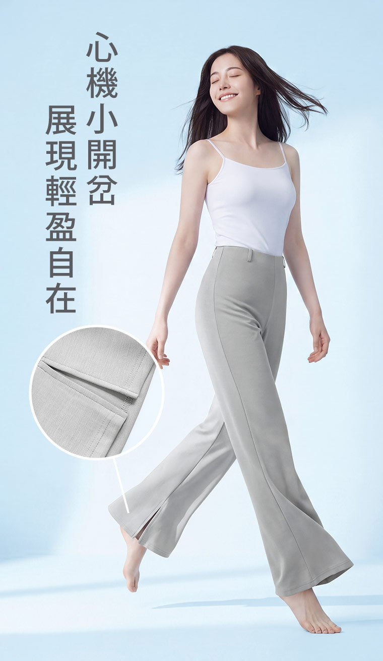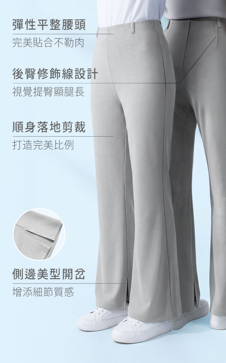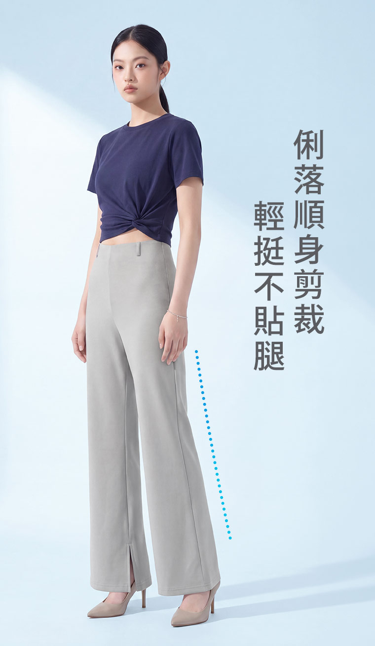 -°C 機能冰涼感美型開衩落地褲質感灰