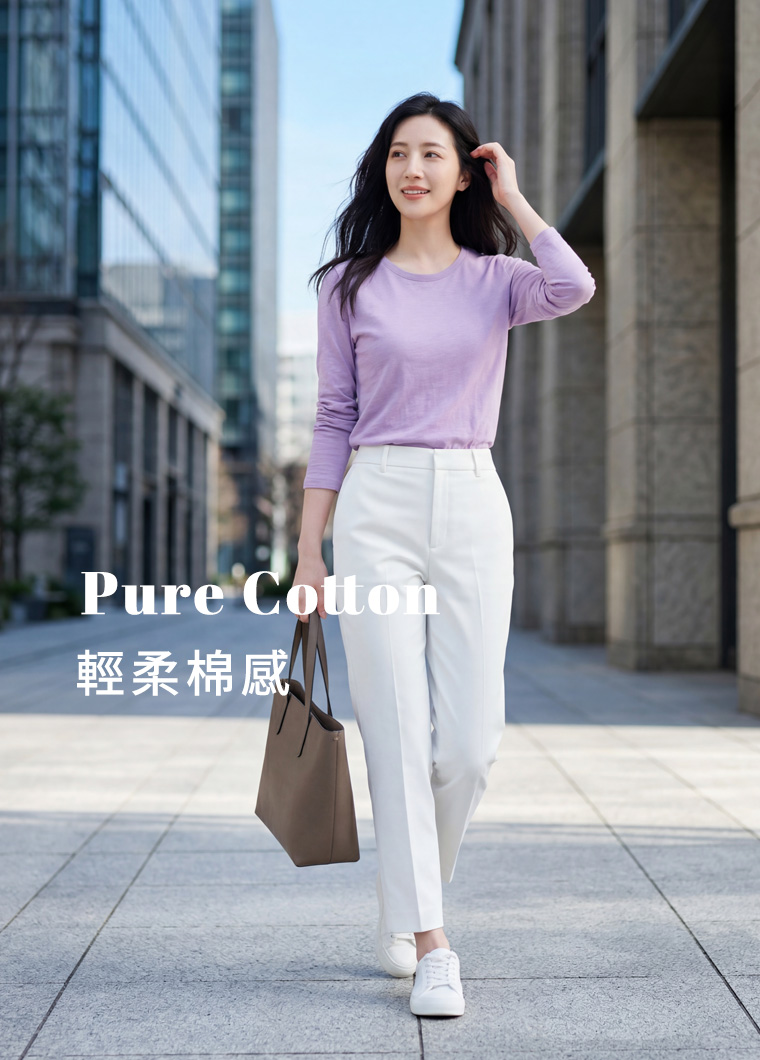 棉質長袖上衣推薦|親膚透氣竹節棉布 × 圓領剪裁簡約好搭|女裝 WOMEN|衣芙 EFShop